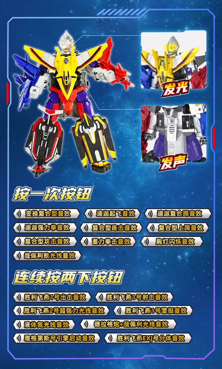 灵动创想正版迪迦奥特曼大号机甲变形六合体机器人玩具男孩儿童生日礼物