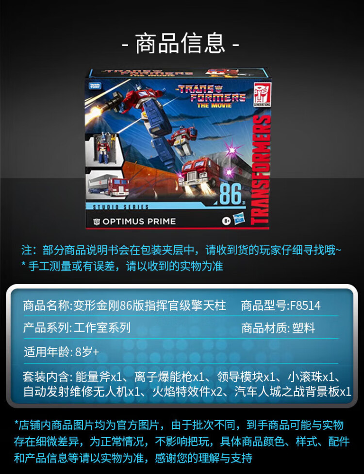 变形金刚(TRANSFORMERS)儿童男孩玩具车模型手办机器人模玩礼物86版指挥官级擎天柱F8514