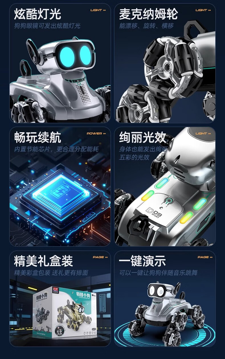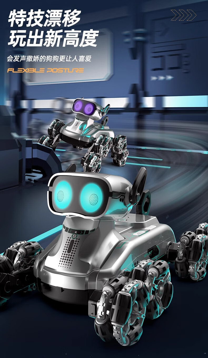 Bosile Intelligent Remote Control Robot Dog Children's Remote Control Car Toy Gesture Sensing Mechanical Pet Dog Little Boy Birthday Gift Handle Remote Control Eight-Wheel Robot Dog Silver 2 Sets of Lithium Batteries - 120 Minutes of Battery Life