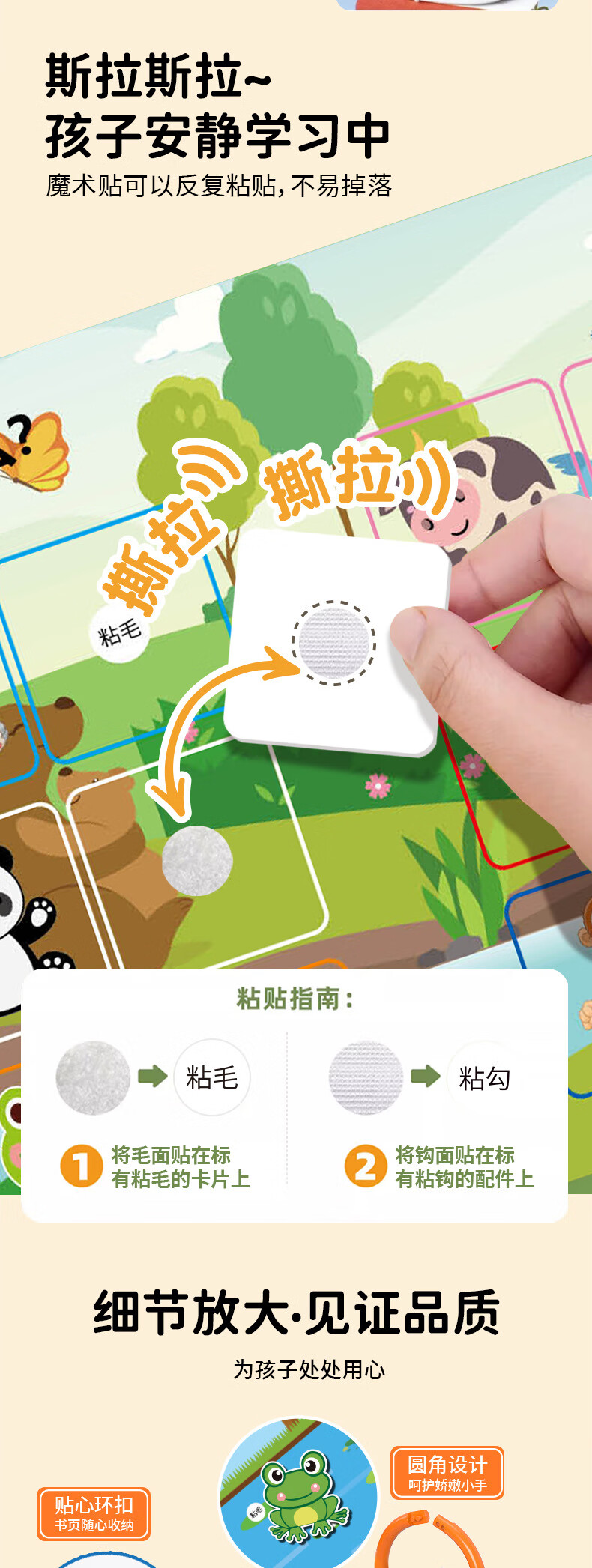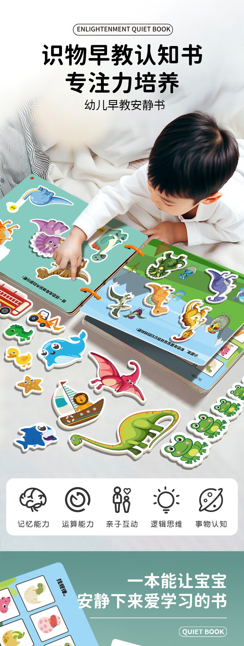 启蒙安静书撕撕书幼儿早教手撕书粘贴书宝宝专注力儿童益智玩具 全套4本【日常生活+恐龙乐园+交通工具+可爱动物】