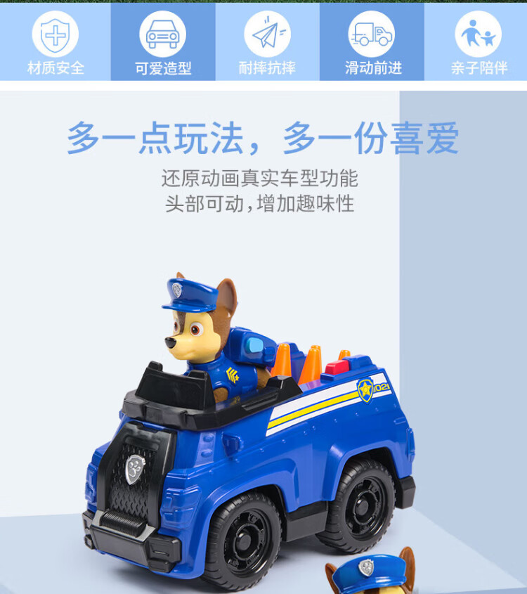 汪汪队立大功(PAW PATROL)汪汪队玩具巡逻车男女孩3-6岁救援车阿奇警车玩具车儿童生日礼物