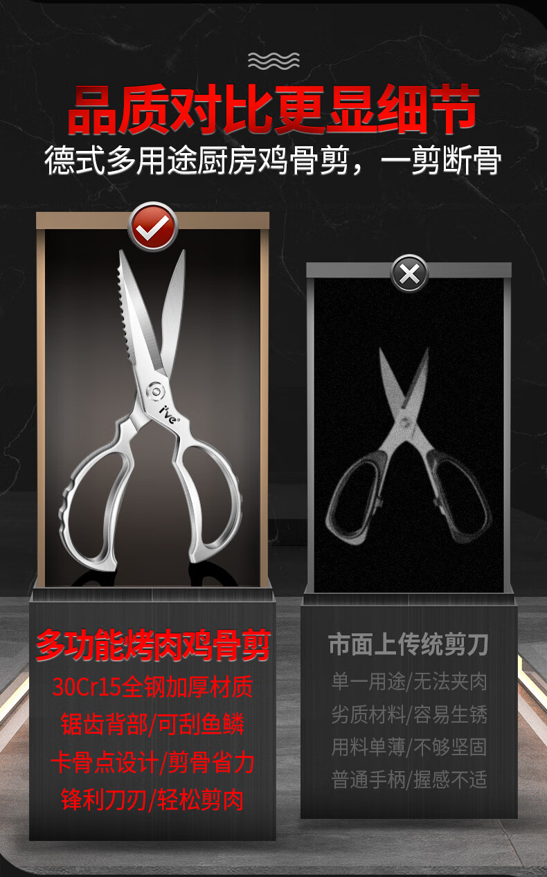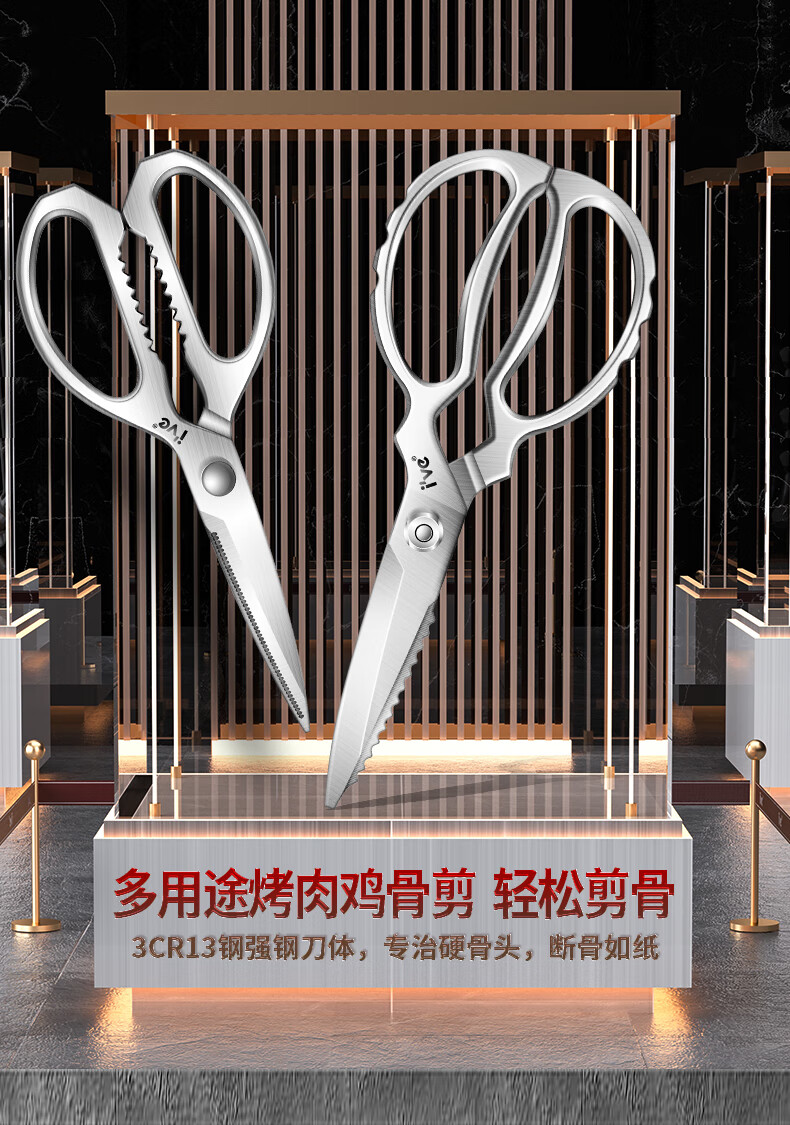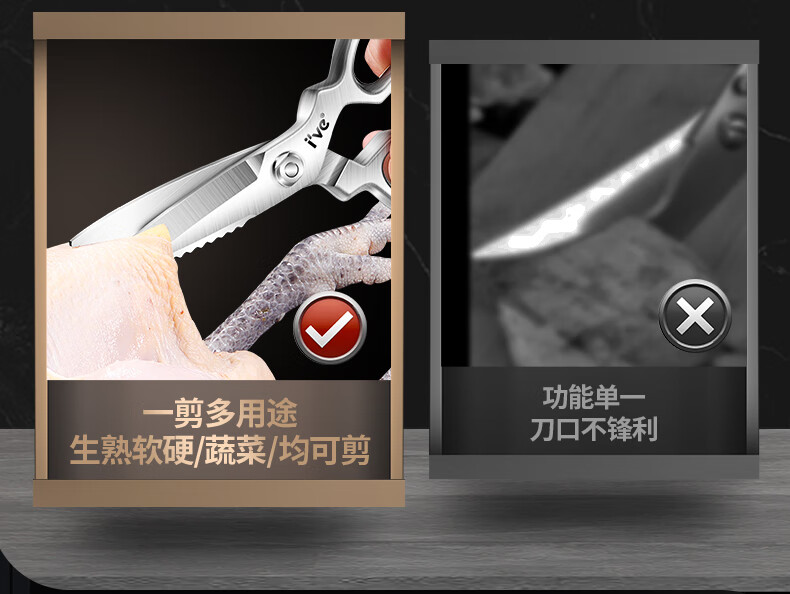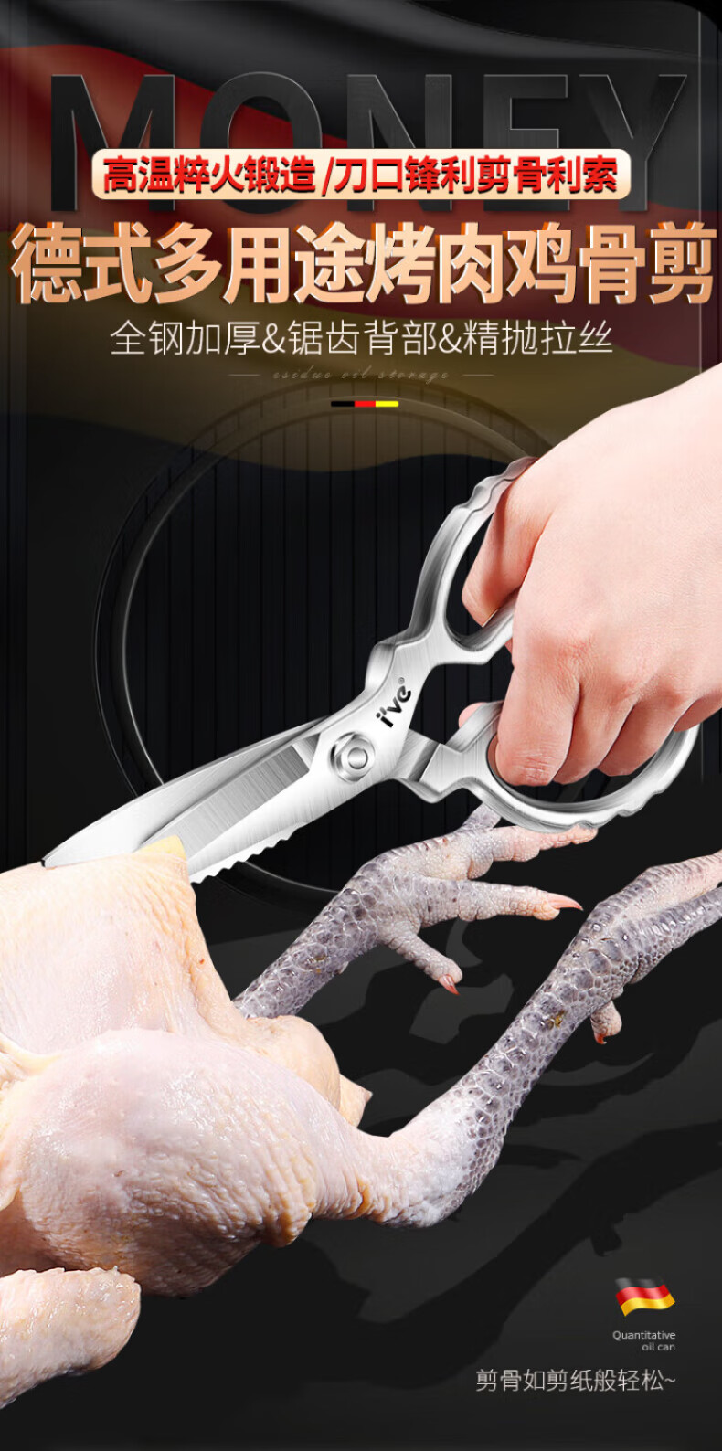 I'VE 德国 厨房专用剪刀 不锈钢强力剪鸡骨剪刀 多功能食物烤肉剪子 【升级款】强力剪骨剪刀