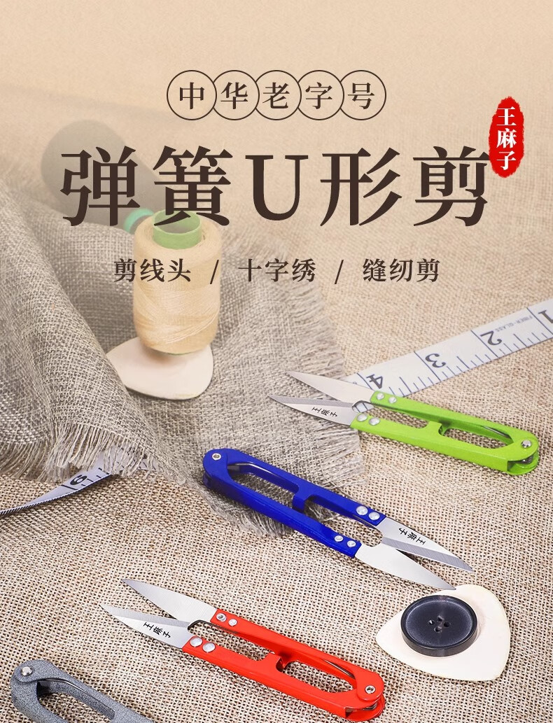 Wang Mazi yarn cutting and sewing scissors, pointed U-shaped thread scissors, small fabric scissors, household clothing scissors, commercial clothing scissors, single pack (color is random and does not support specification)