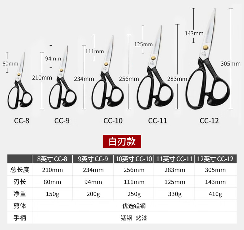 Zhang Xiaoquan Schneiderschere, Heimkleidung, Nähgarnschneider, Stoffschneidewerkzeug in Profigröße, 9/10/12 Zoll, 8 Zoll + große farblich passende Schere, Modell mit schwarzer Klinge