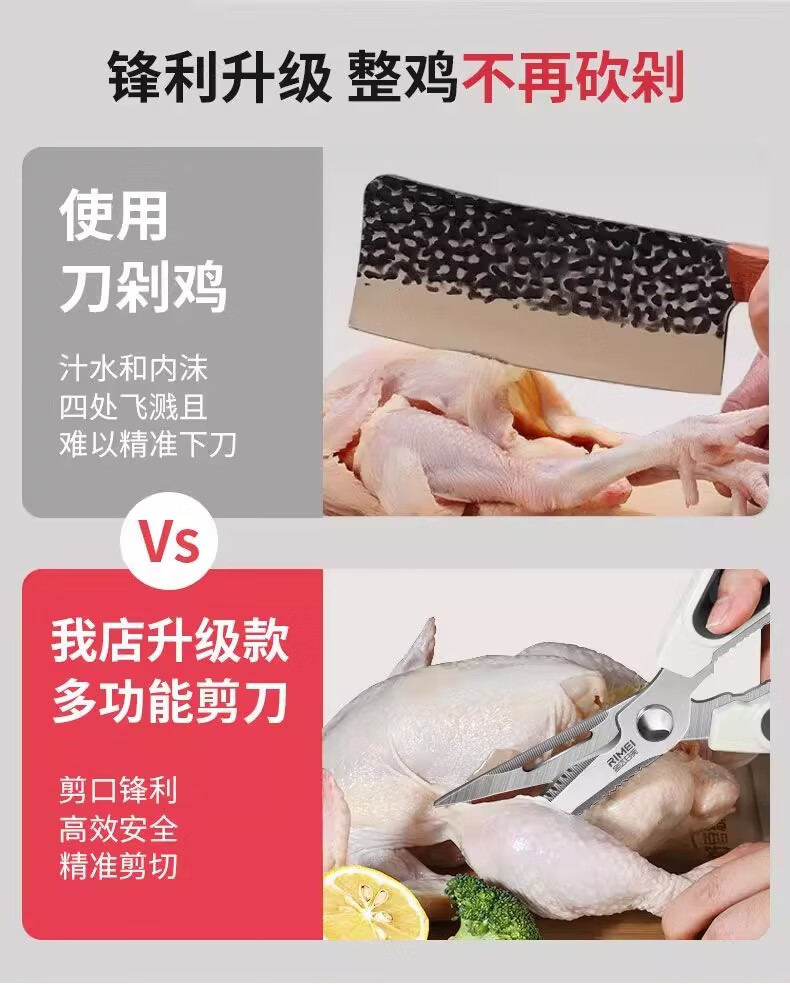 Jinda Rimei ciseaux de cuisine multifonctionnels en acier inoxydable, ciseaux alimentaires, canard, oie, poulet, coupe d'os, ustensiles de cuisine spéciaux, ciseaux de cuisine multifonctionnels + ensemble de couteaux magnétiques