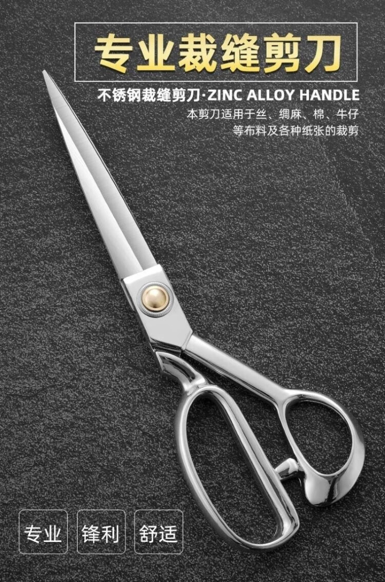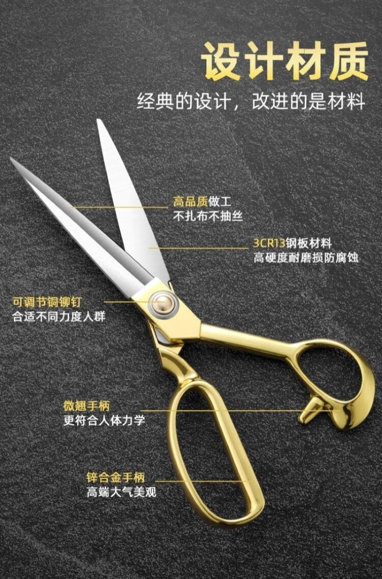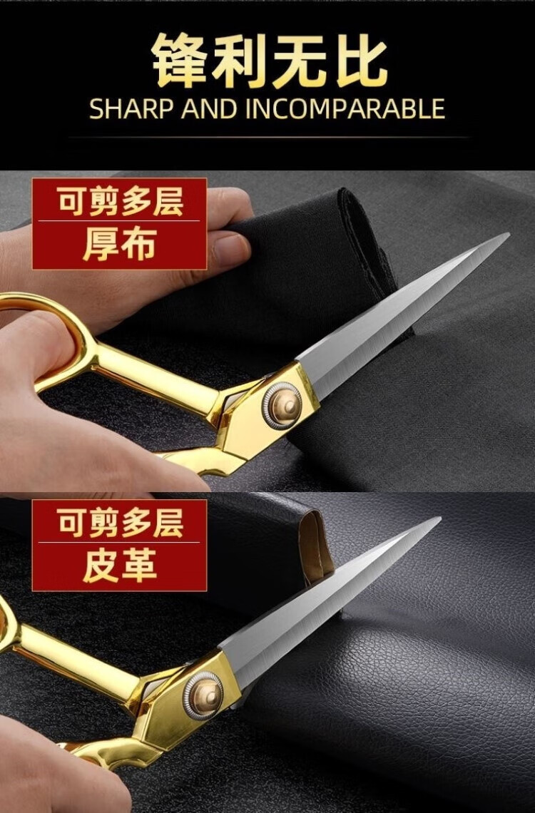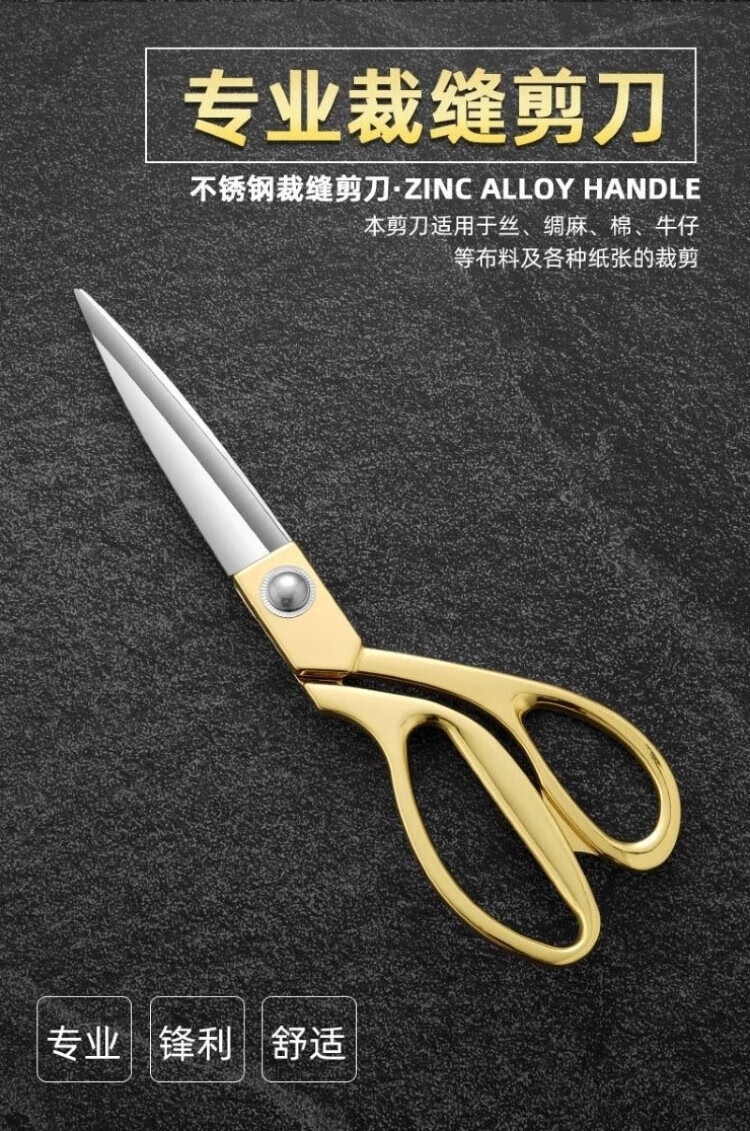 OLOEY日本进口品质裁缝剪刀裁布专用不锈钢合金裁缝剪刀 10寸8寸缝纫 金色26.5cm10.5寸散装
