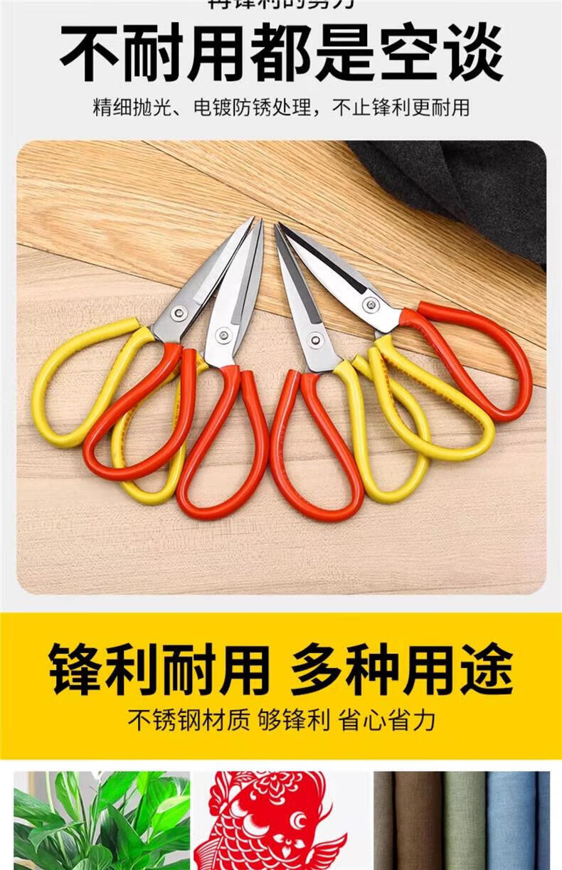 专用工业用裁缝剪子商用不锈钢多功能皮革布鱼头剪大剪刀家用厨房 1把大号加宽 无规格