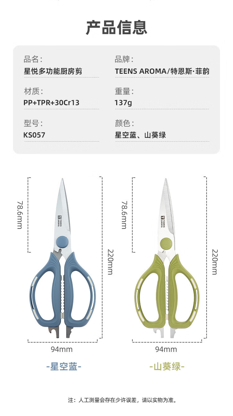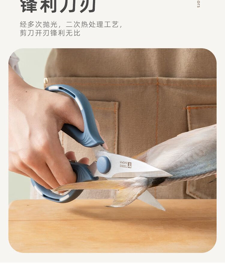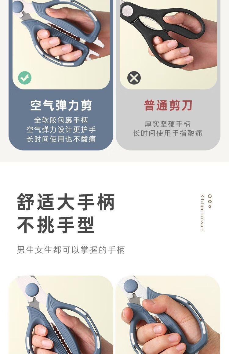 Yeyu Tenns stainless steel kitchen scissors multifunctional household sharp chicken bone scissors Wasabi green kitchen scissors - new color rubber material elastic handle