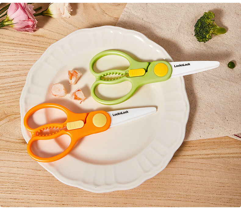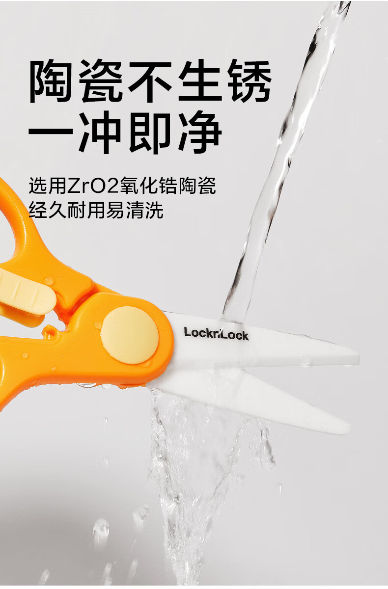 GUEIN乐扣乐扣副食品剪刀宝宝专用婴儿陶瓷剪刀儿童食物剪可携式副食品 活力橙【带收纳盒】