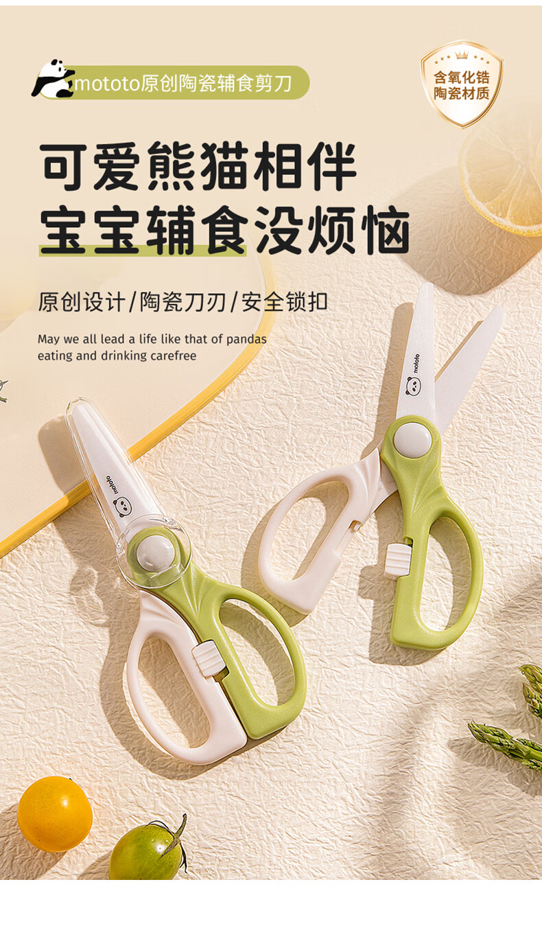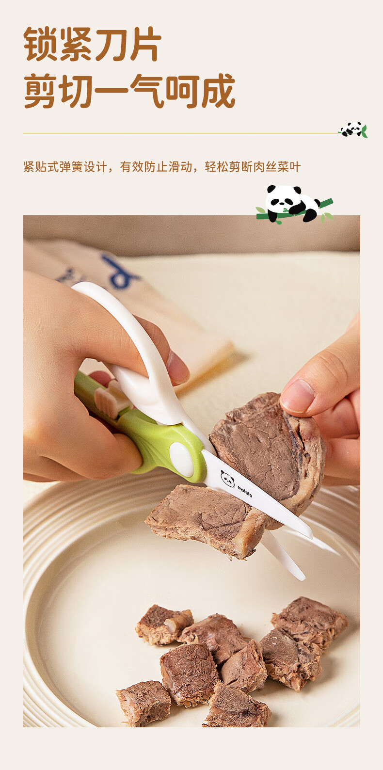 Modern Housewife Ceramic Food Scissors Food Grade Children and Infants Special Kitchen Convenient Food Scissors 2-Piece Food Scissors Set Ceramic Food Scissors + Panda Peeling Knife (Yellow Style)
