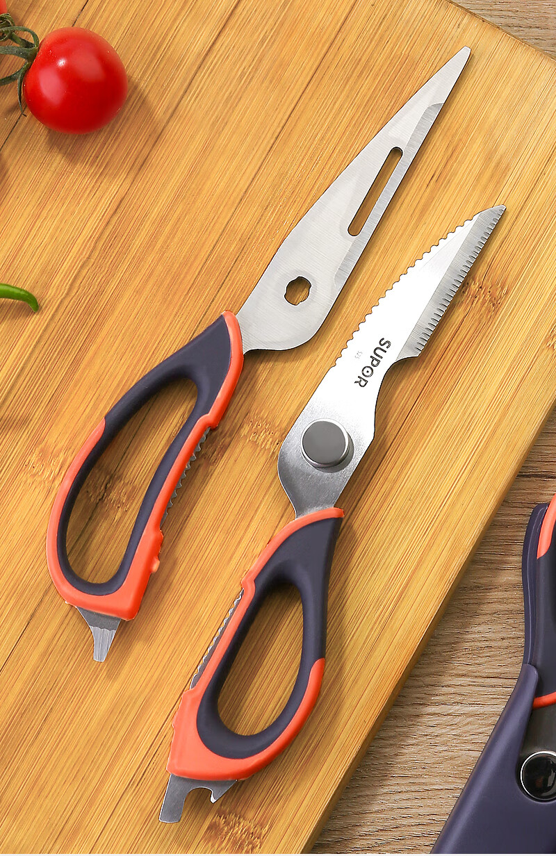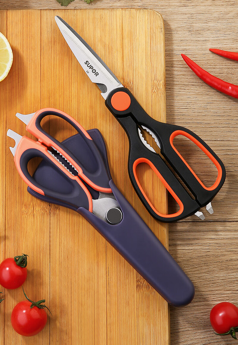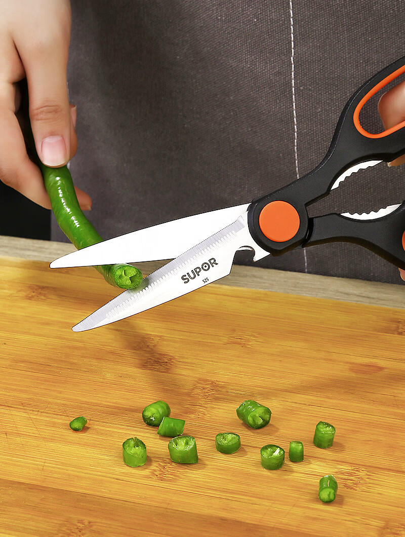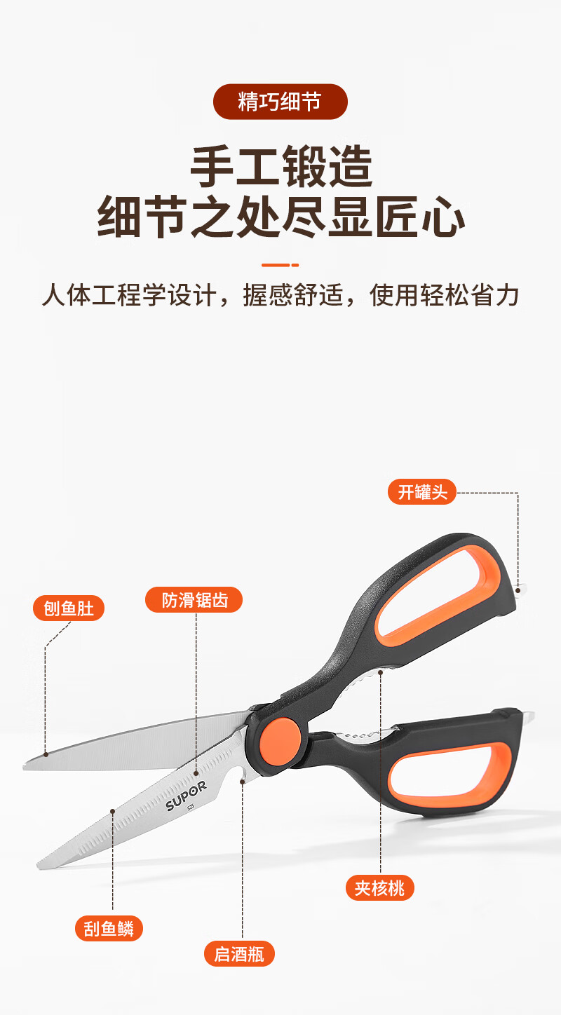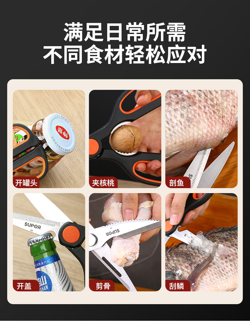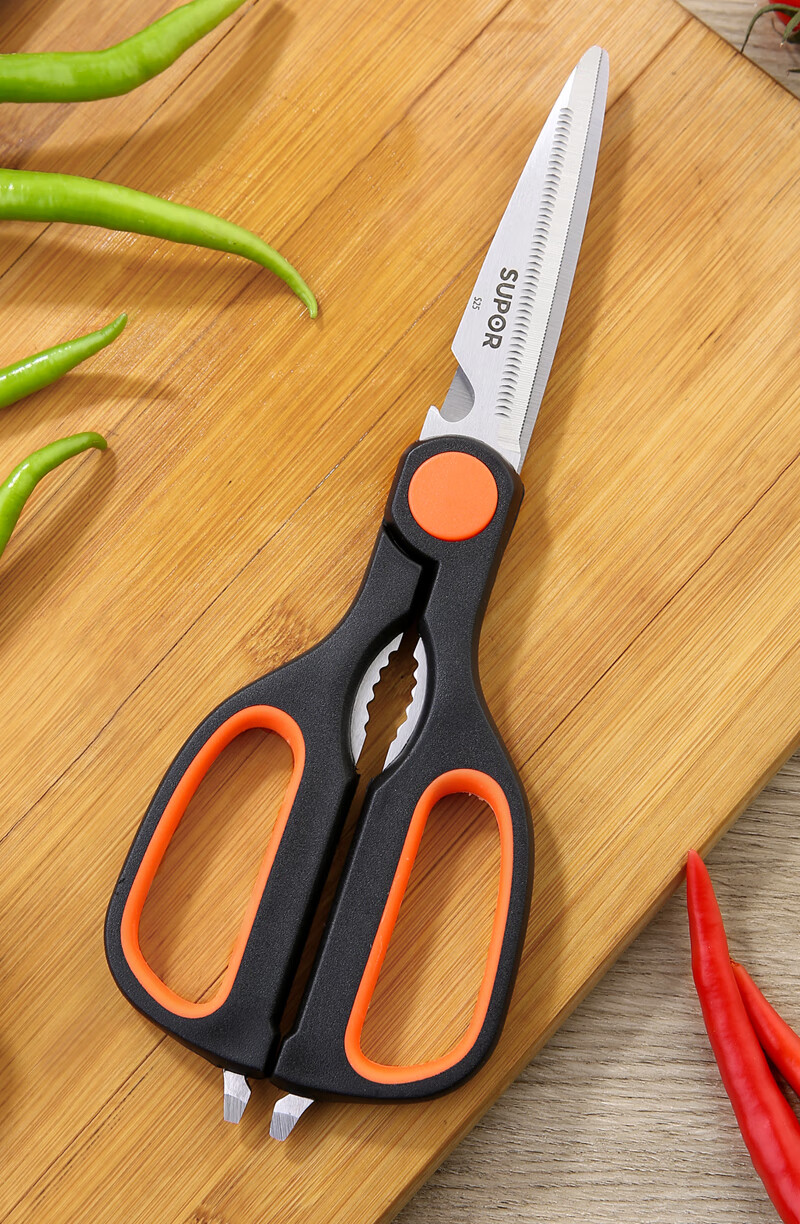 苏泊尔(SUPOR)剪刀家用厨房剪刀不锈钢多功能食物强力鸡骨多用杀鱼大剪子 多功能剪刀【送水果刀+削皮刀】