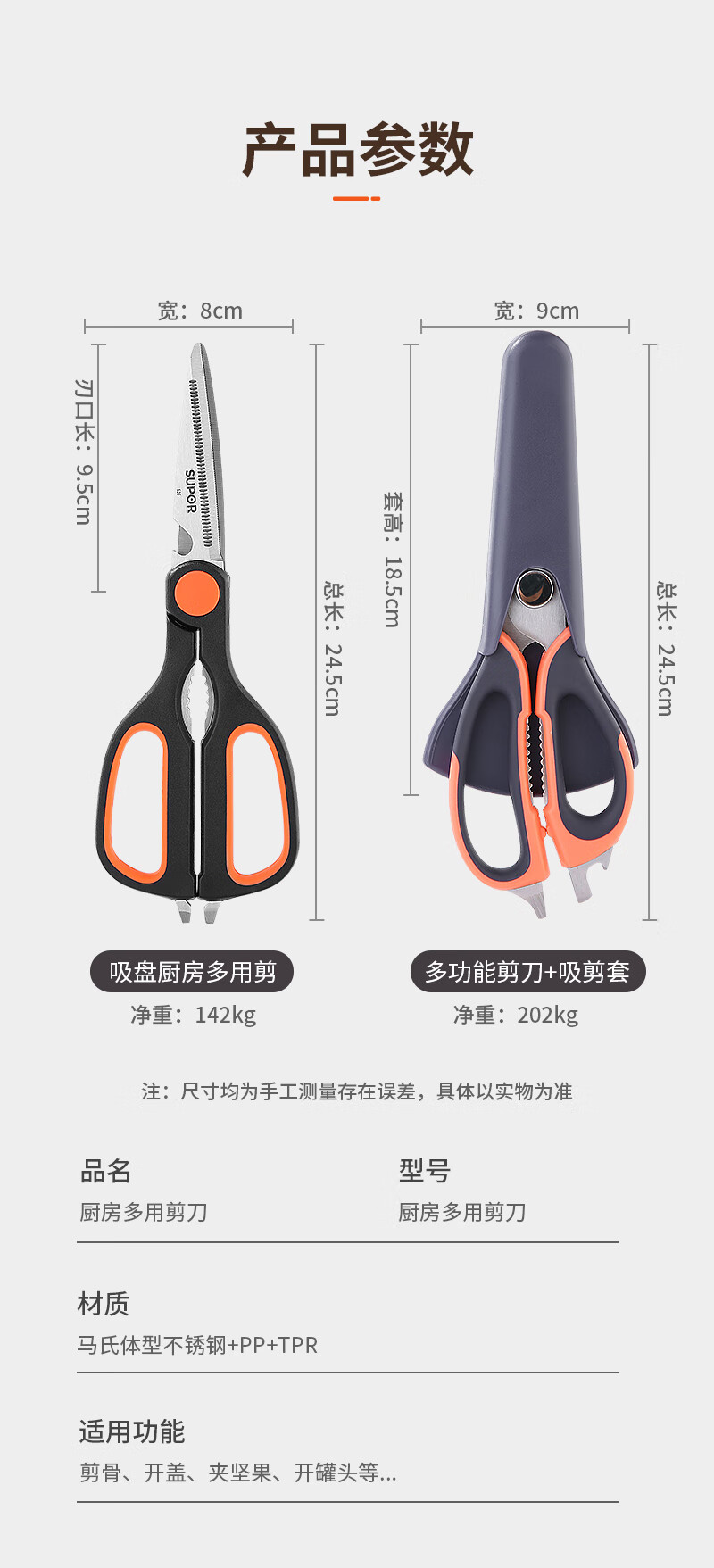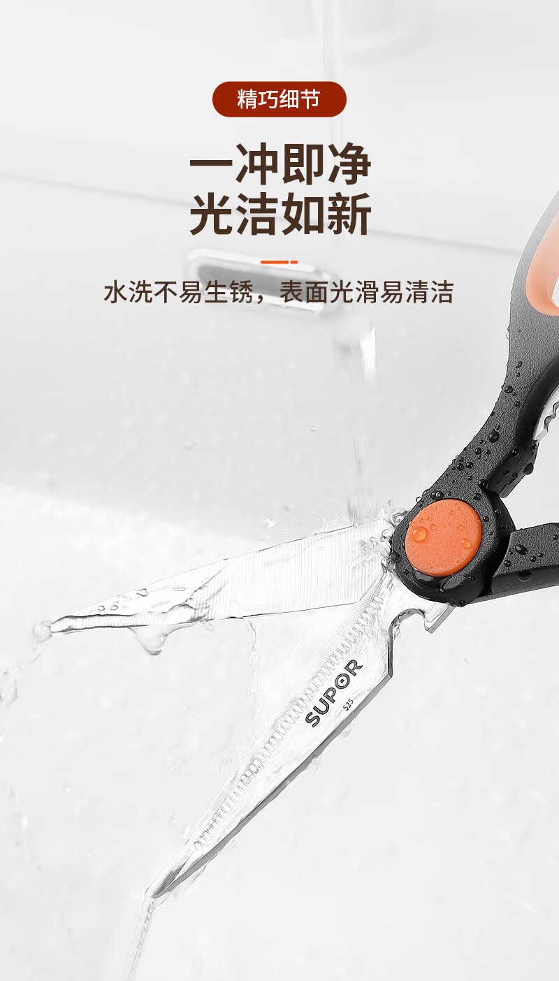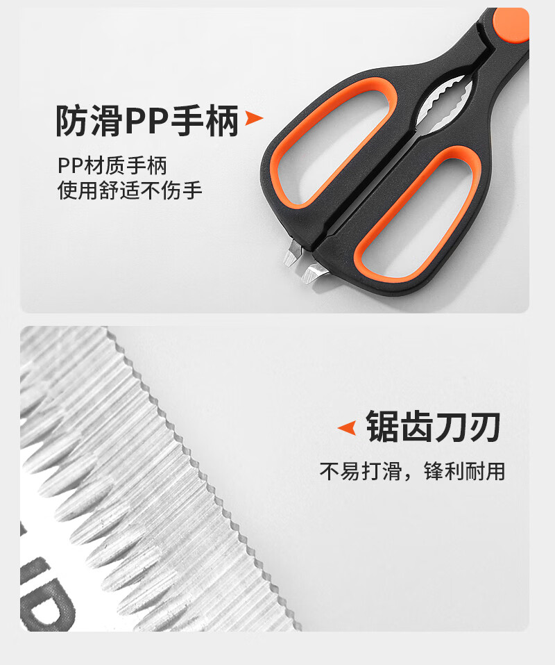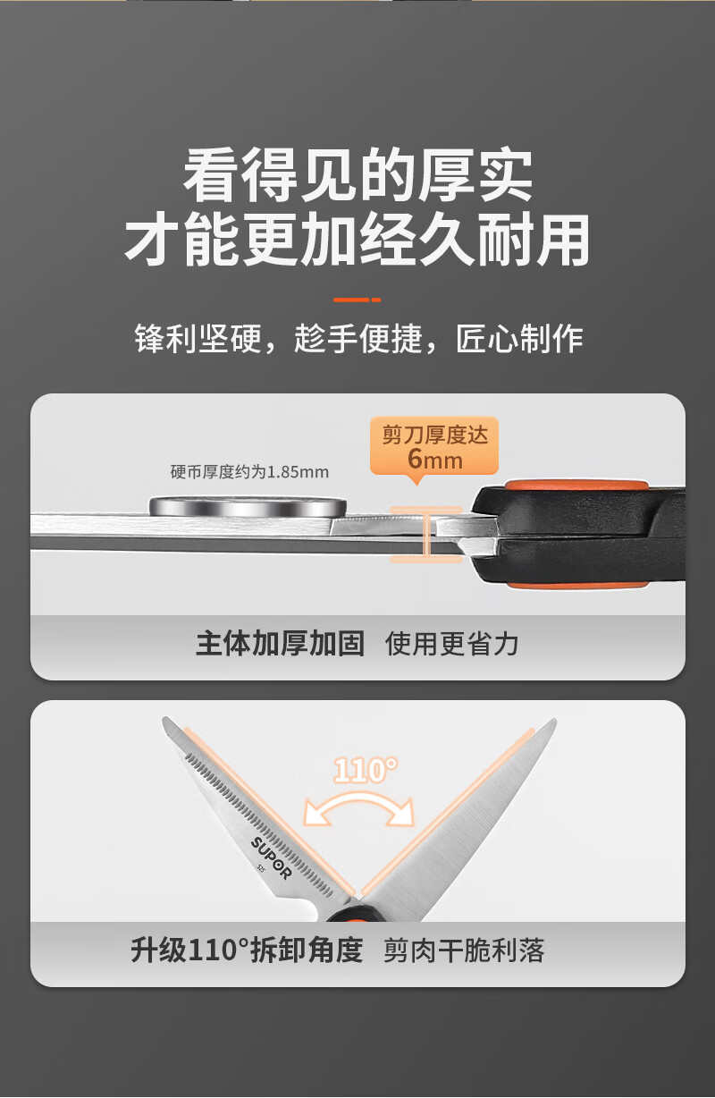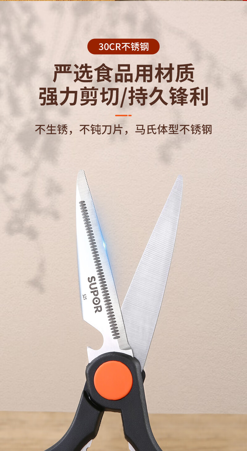 苏泊尔(SUPOR)剪刀家用厨房剪刀不锈钢多功能食物强力鸡骨多用杀鱼大剪子 多功能剪刀【送水果刀+削皮刀】