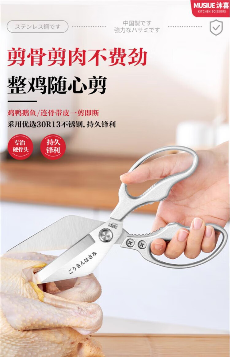 麦舒特日本厨房家用剪刀多功能剪鸡鸭鹅骨头烤肉专用不锈钢强力大 强力大头剪骨刀