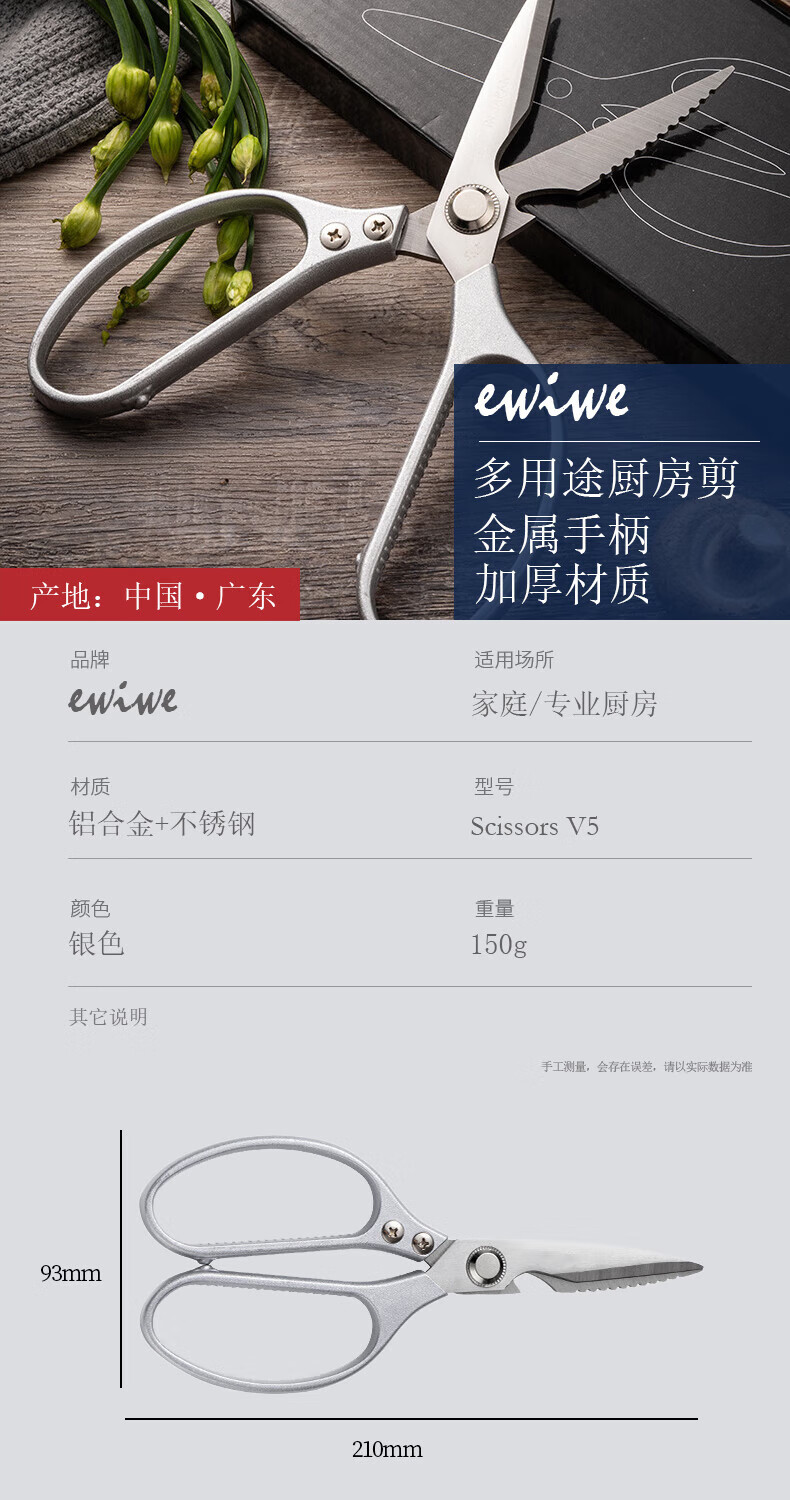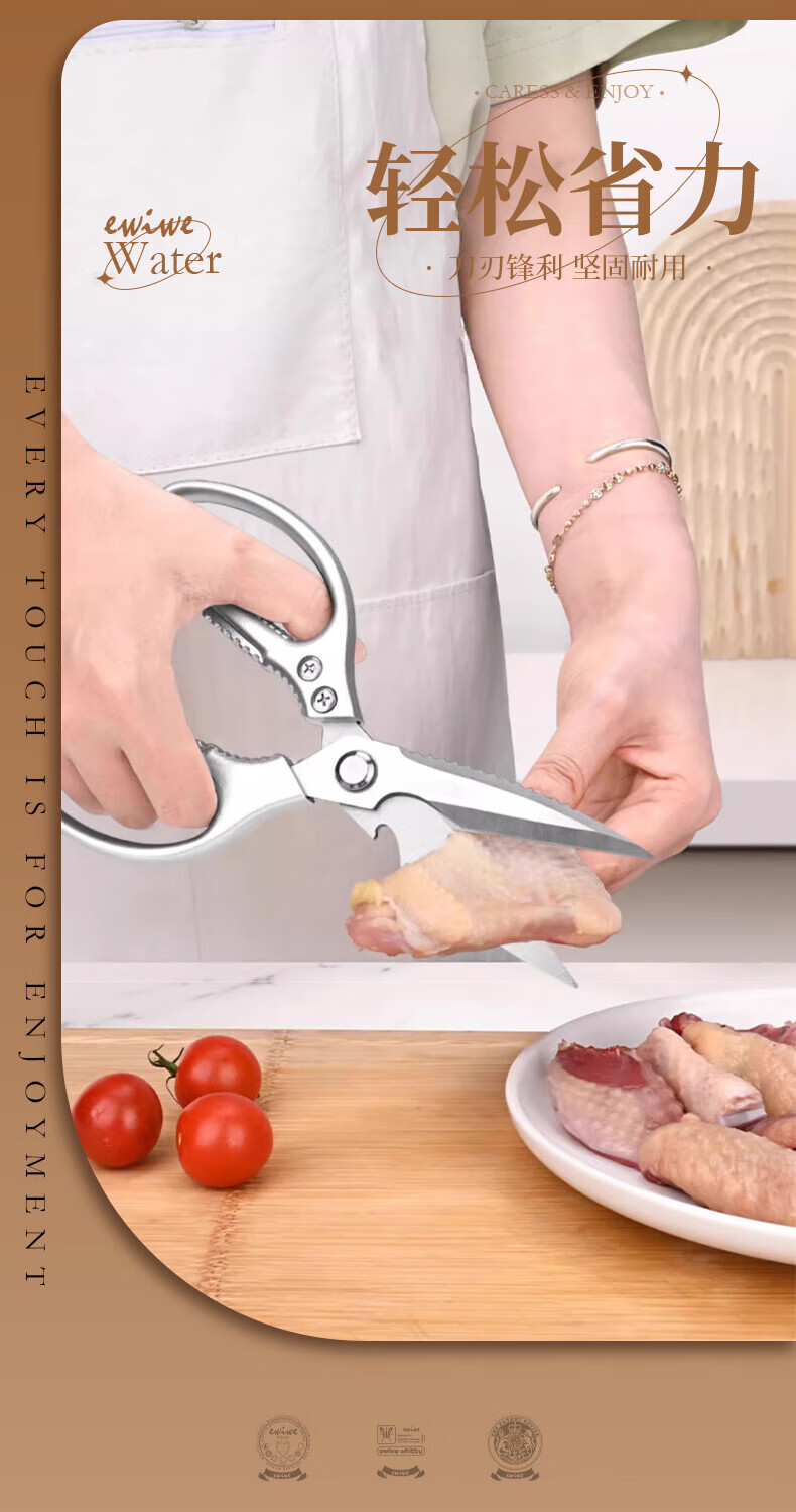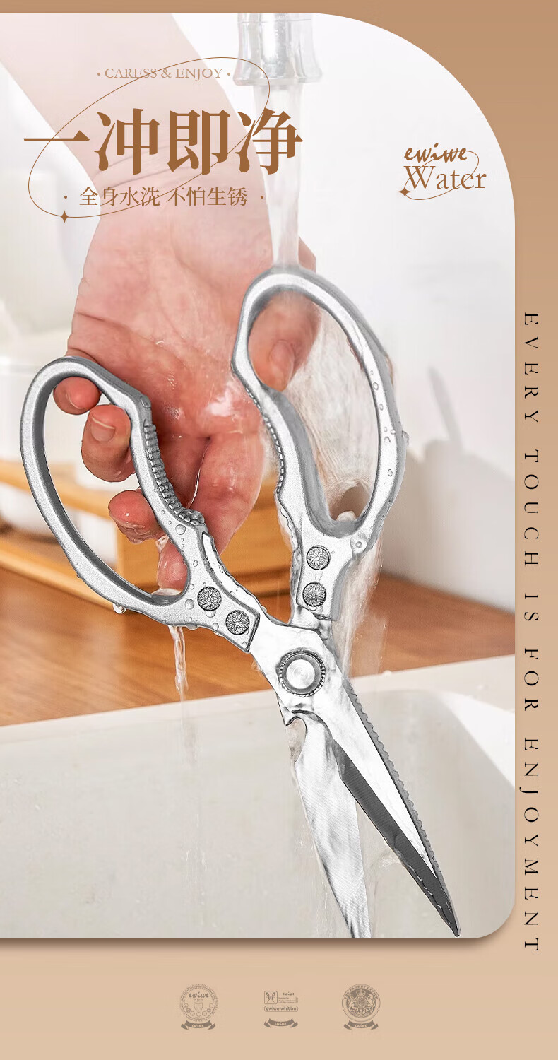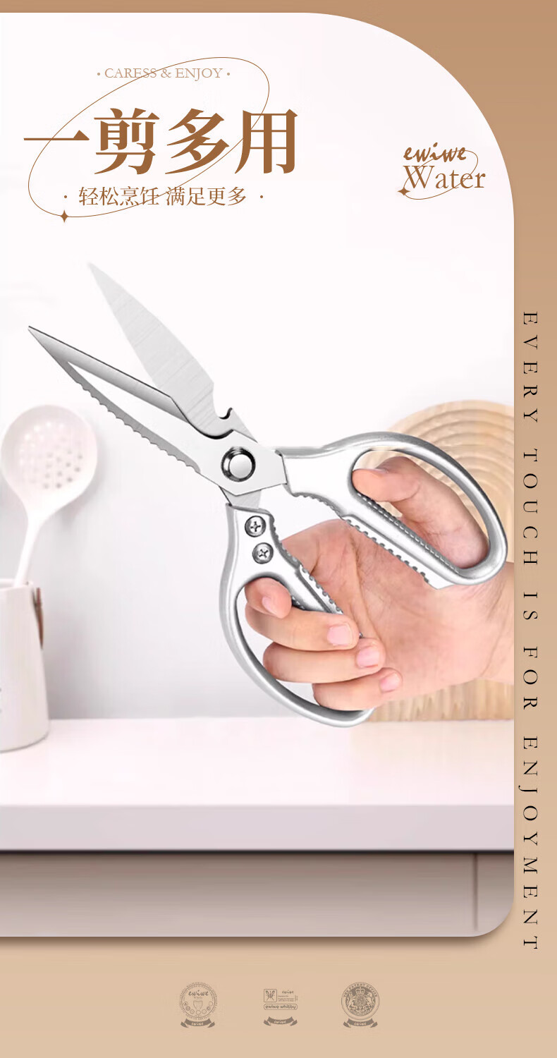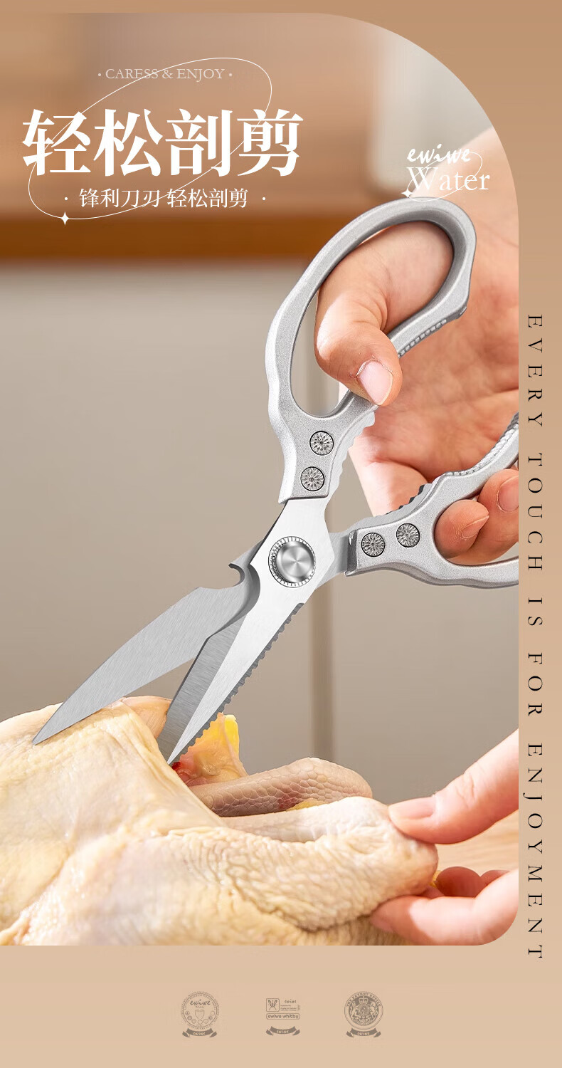 EWIWE Ciseaux de Cuisine Multifonctionnels, Ciseaux à Os de Poulet Puissants pour Tuer Les Poissons Domestiques pour Barbecue, Ciseaux Alimentaires Tranchants en Acier Inoxydable, Argent Japonais/Matériau Entièrement Métallique/Coffret Cadeau