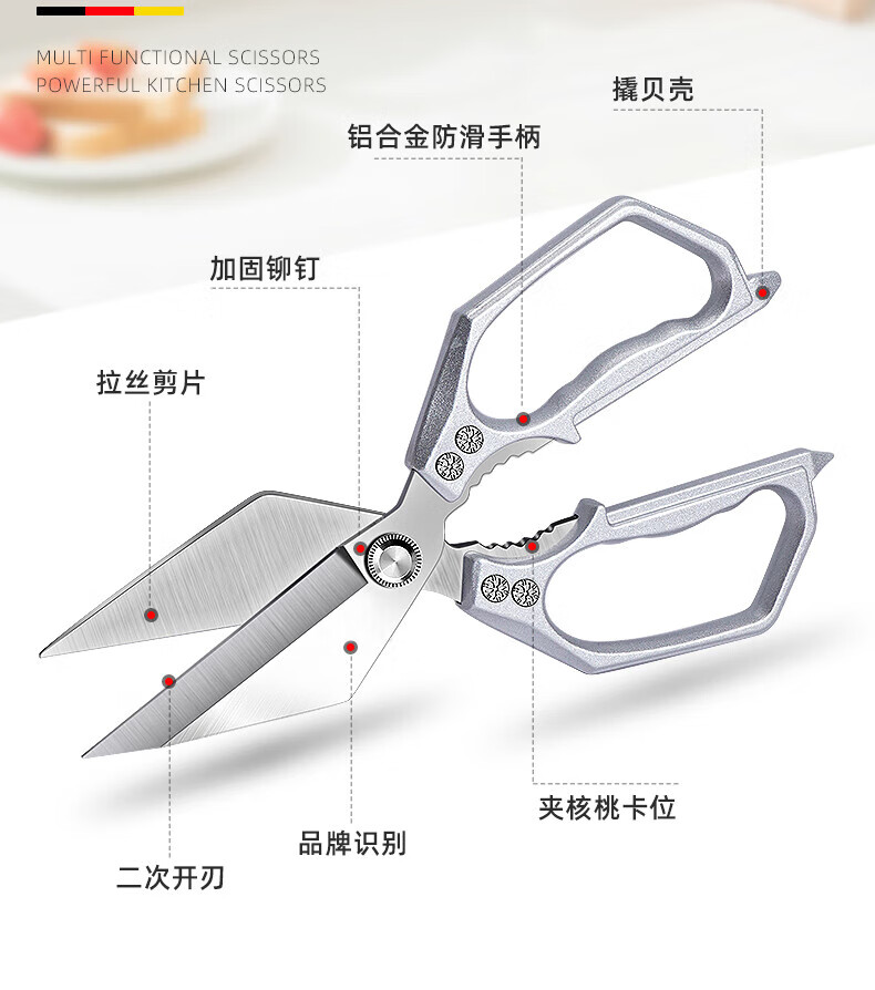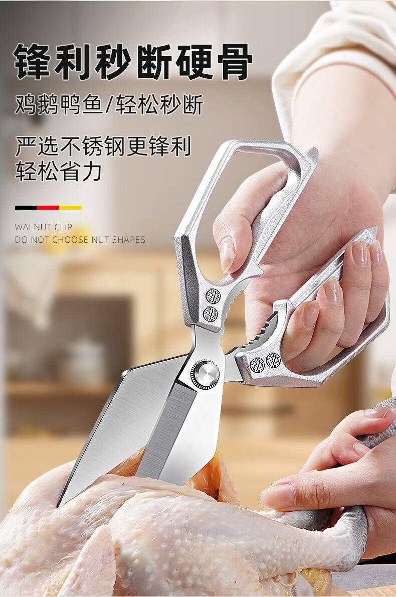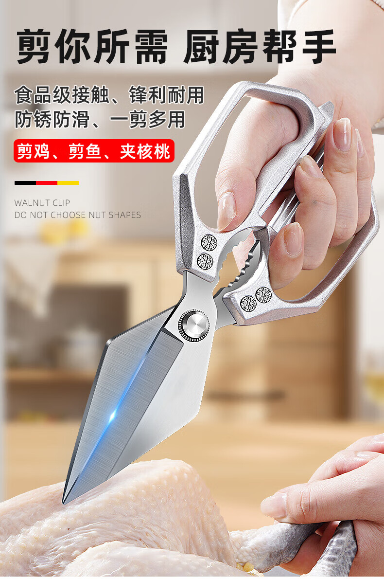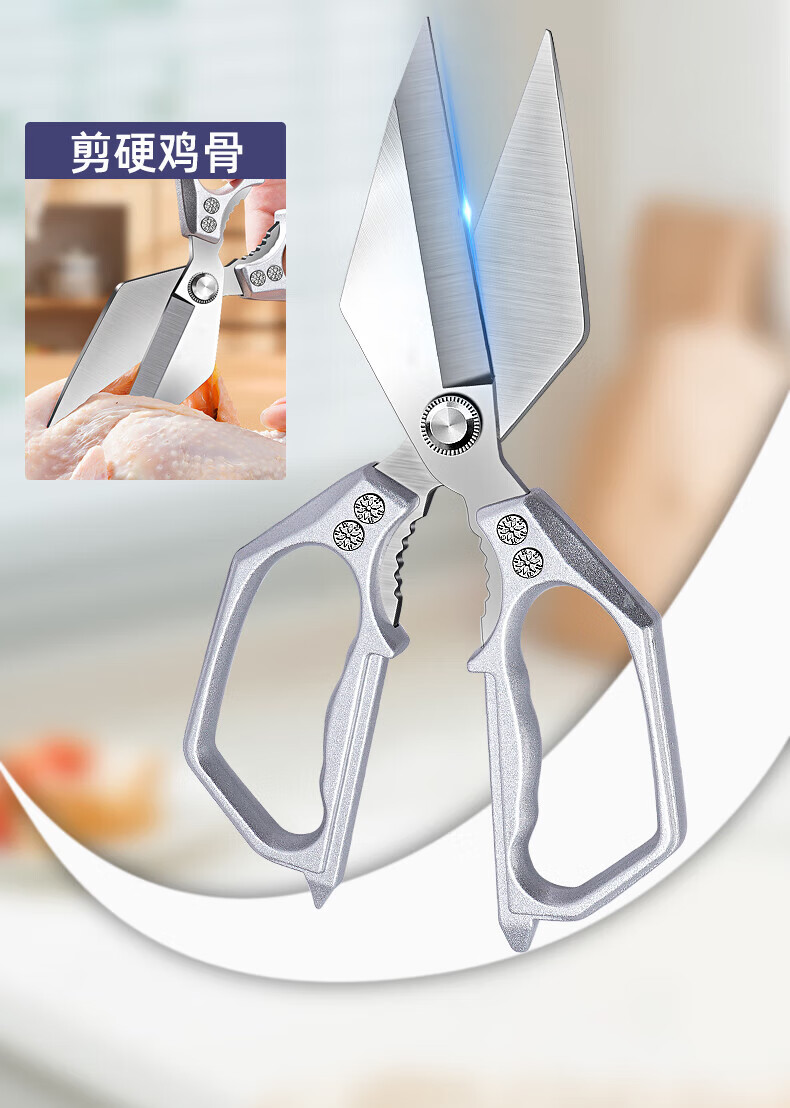 Zwilling large-head scissors for kitchen household multi-functional scissors for chicken, duck and goose bones strong stainless steel thickened fish-killing scissors K715-large-head kitchen scissors silver