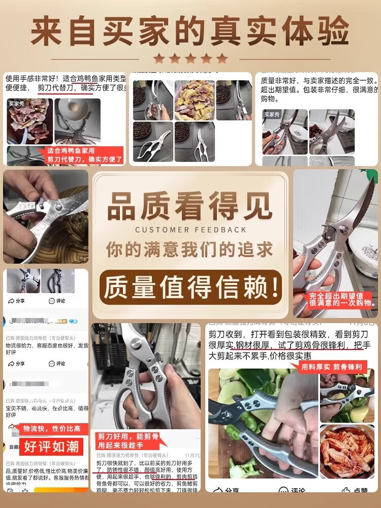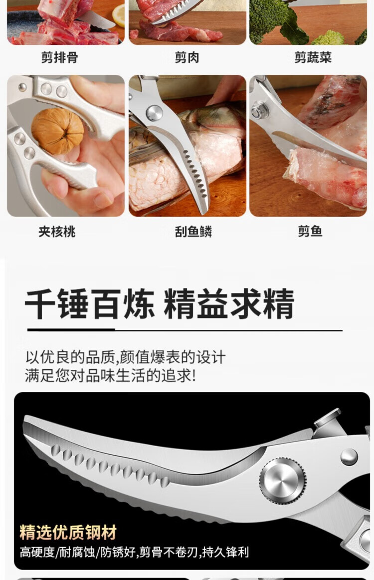 Deutsche Sawang-Schere, leistungsstarke Hühnerknochenschere für den Haushalt, multifunktionale Küchenschere, Hühnerknochenschere, Fischtötungsschere, Hühner-, Enten- und Gänseknochen, verbessert und verdickt, nicht scharf, inklusive Ausgleich. Kraftvolle Hühnerknochenschere