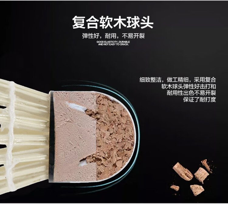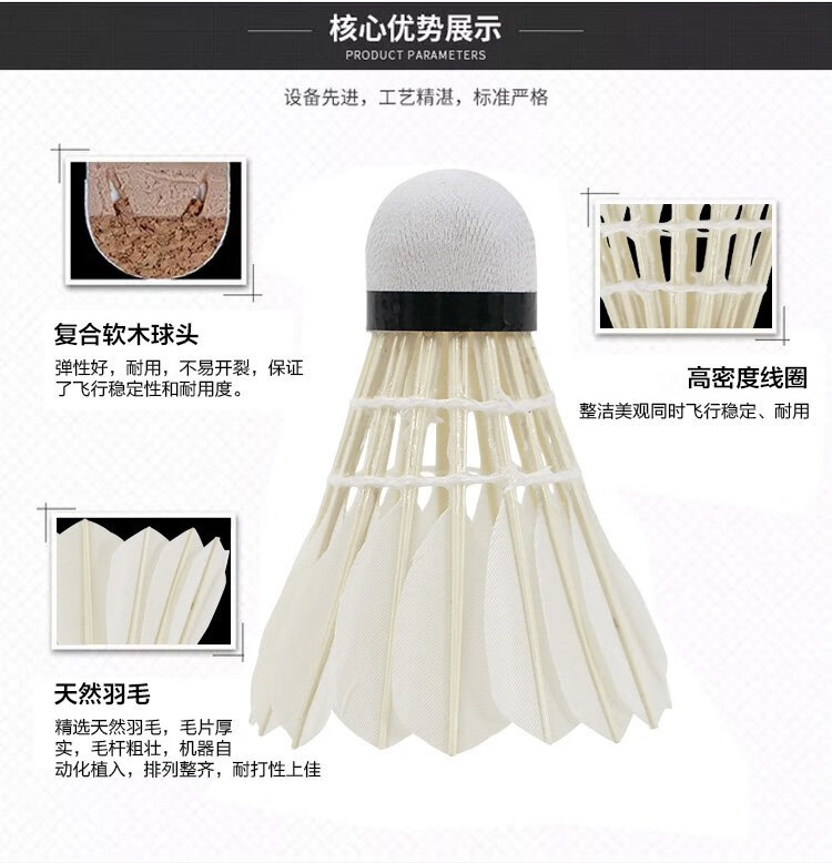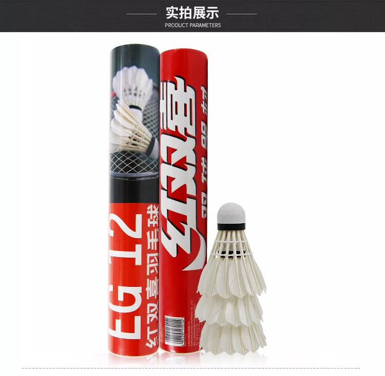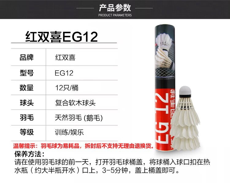 红双喜DHS羽毛球比赛耐打复合软木鹅毛羽毛球12只装EG12