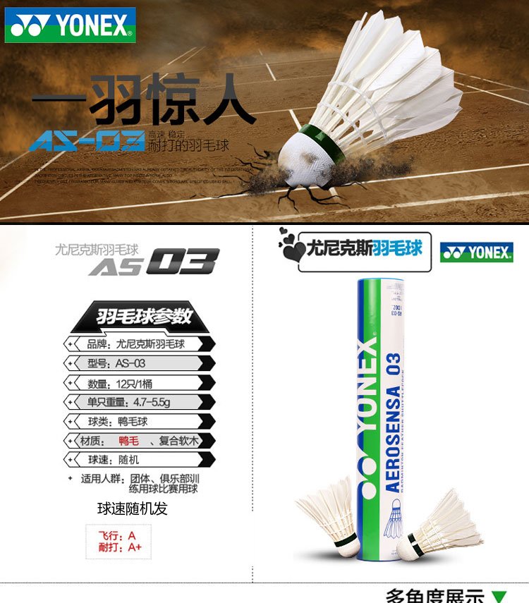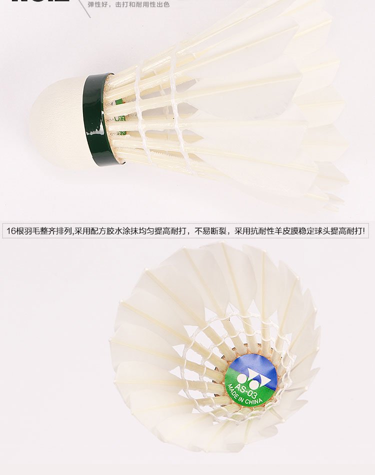 YONEX尤尼克斯羽毛球AS-03耐打鸭毛羽毛球(1桶12只装)