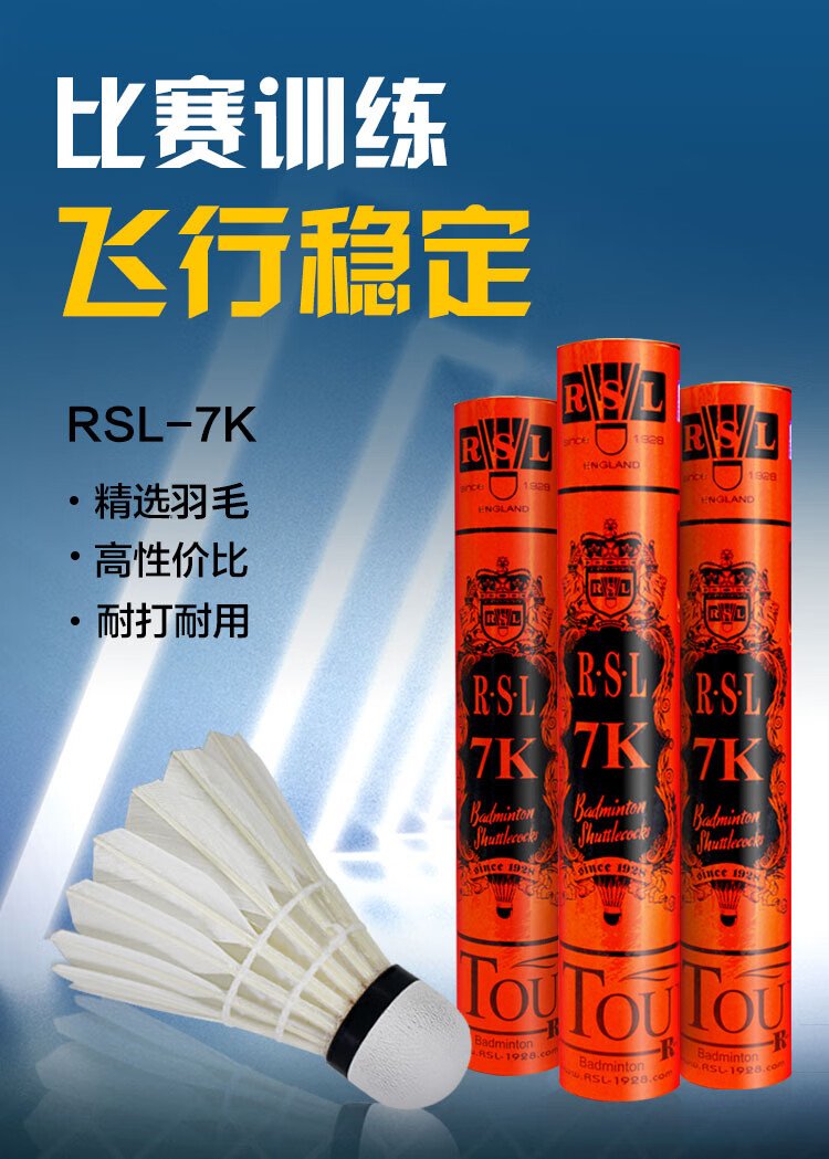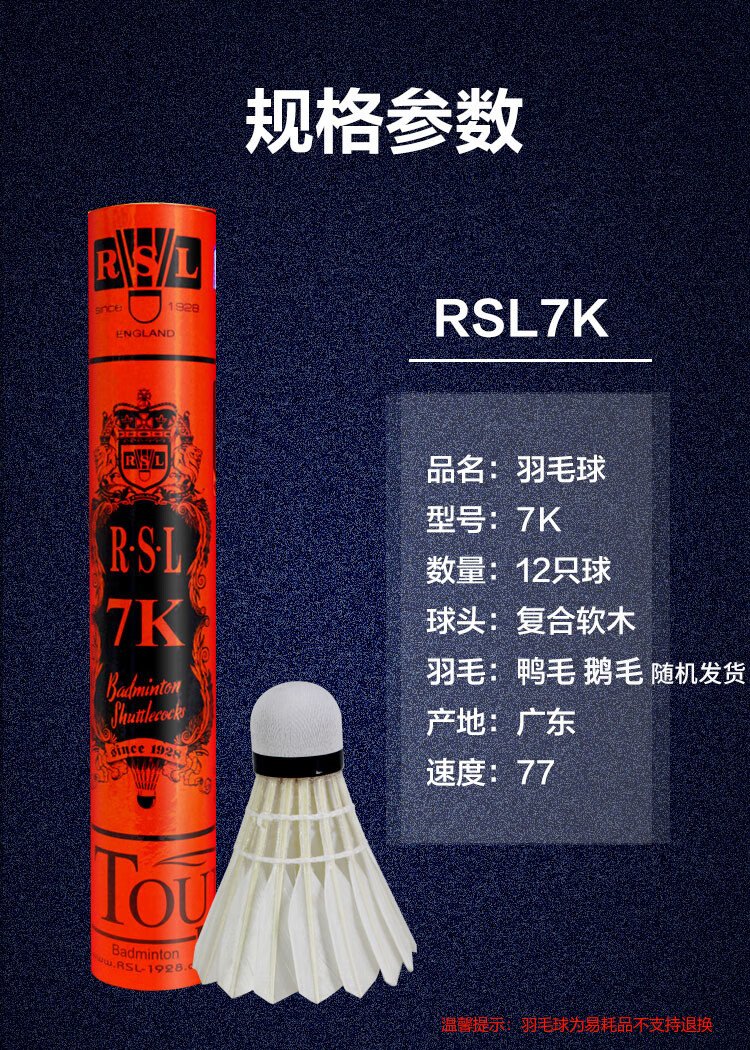 Asia Lion (RSL) badminton training competition stable and durable RSL7K No. 77 speed duck feathers 12 pieces/barrel