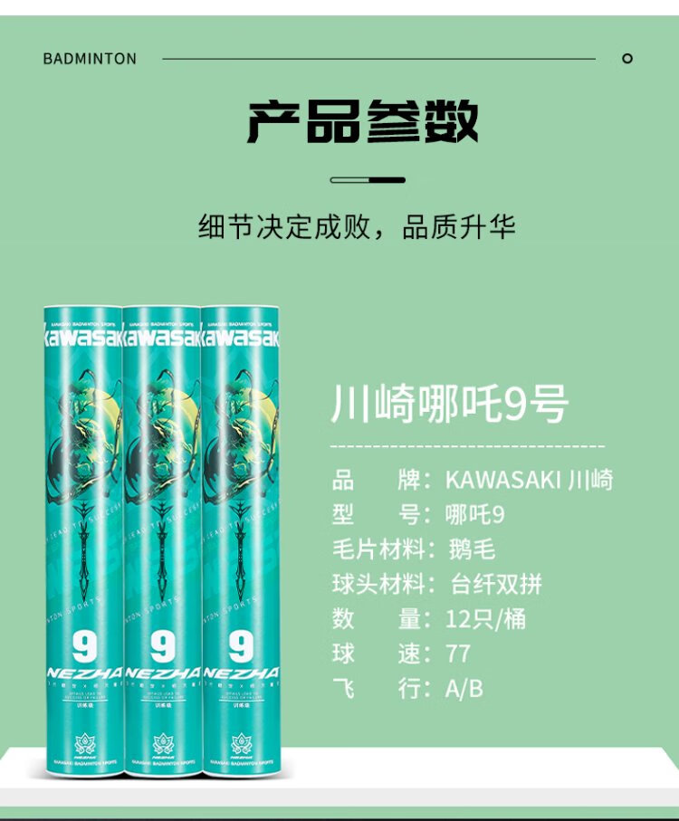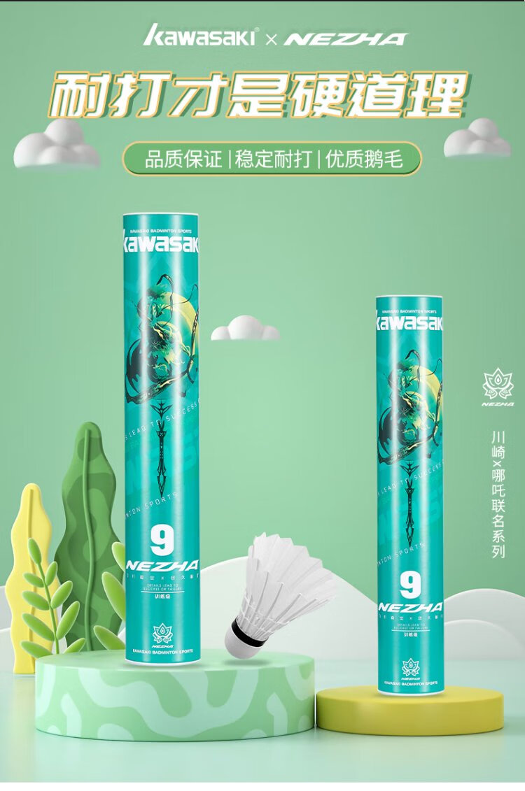 川崎(KAWASAKI)羽毛球比赛训练耐打鹅毛球12个装哪吒9号球
