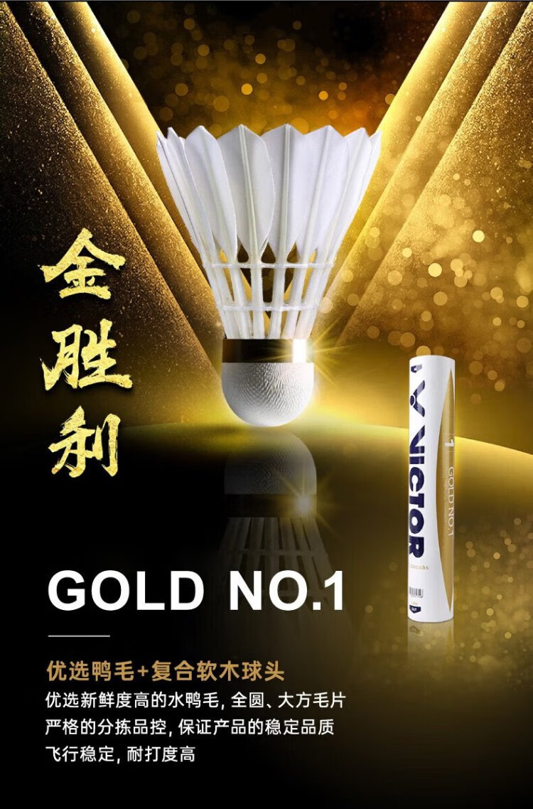 VICTOR威克多羽毛球金黄1号鸭毛球比赛训练用球2速 12只装