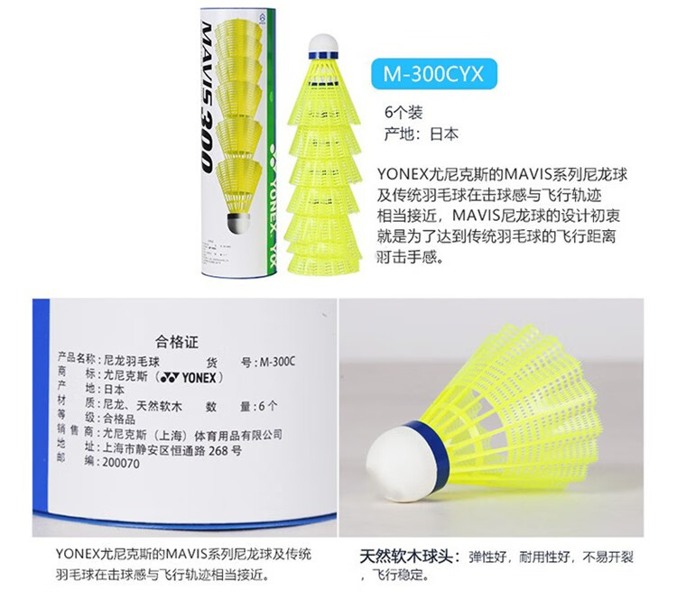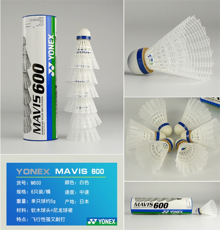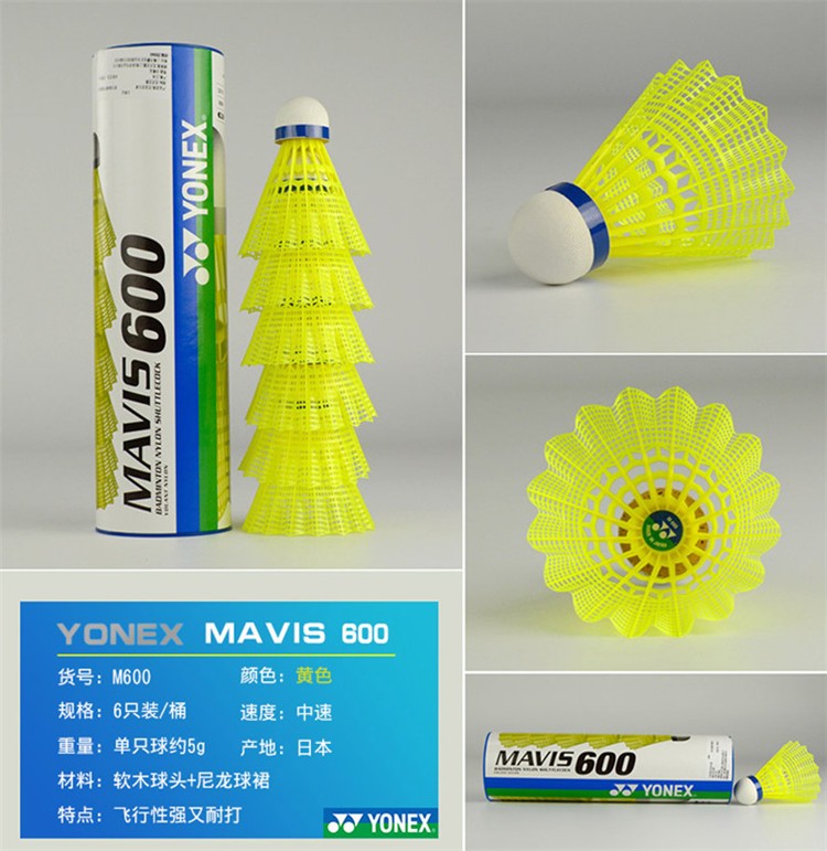 尤尼克斯(YONEX)羽毛球塑料球yy尼龙球耐打王6只装训练室外防风M2000日本进口M600 M600黄色中速 1筒 稳定耐打 日本产