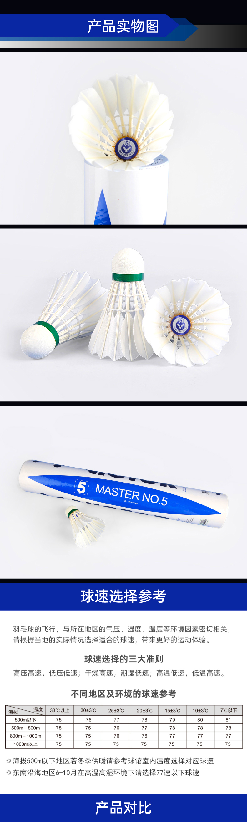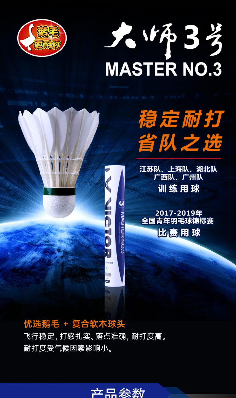 威克多(VICTOR)羽毛球鹅毛球 耐打飞行稳定比赛训练球大师3号/大师5号单筒12只装 MS3 77球速 1筒
