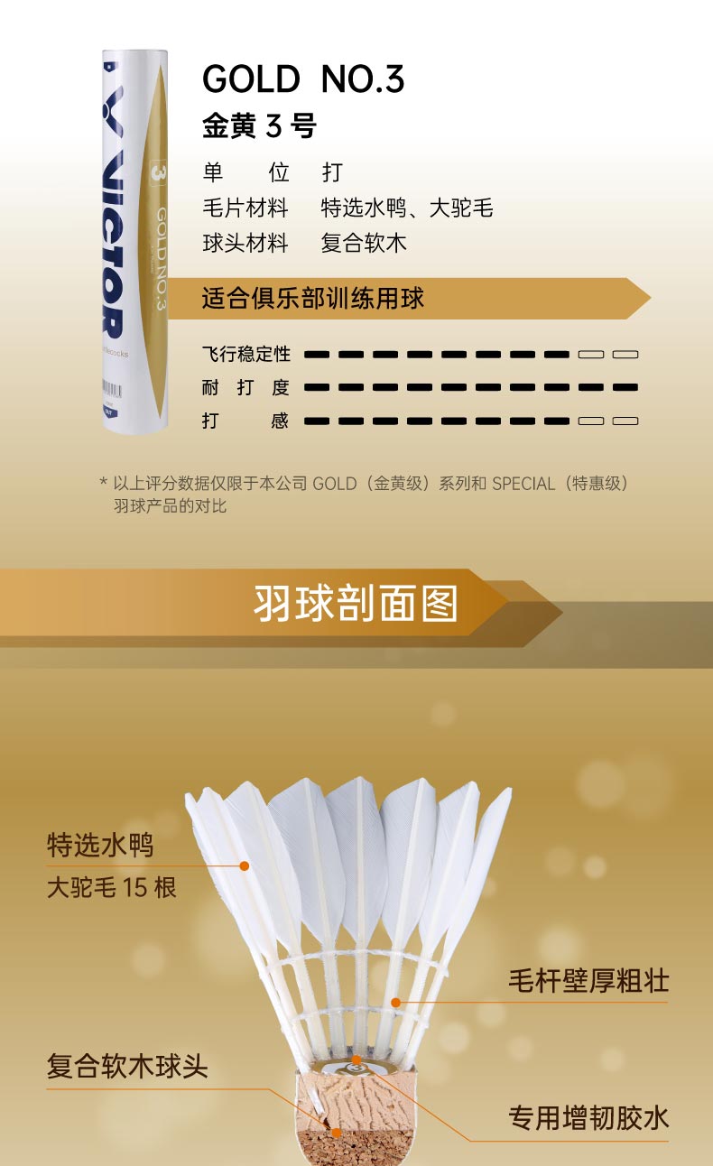 VICTOR badminton ballon de plumes de canard ballon d'entraînement de club durable doré n ° 3 tube unique 12 pièces GD3 GD3 77 vitesse de balle 1 tube