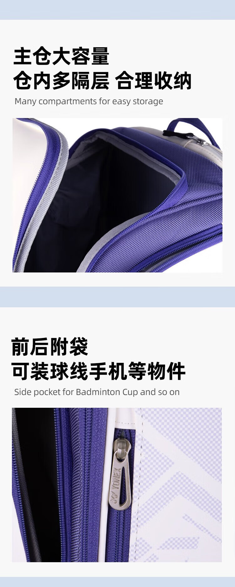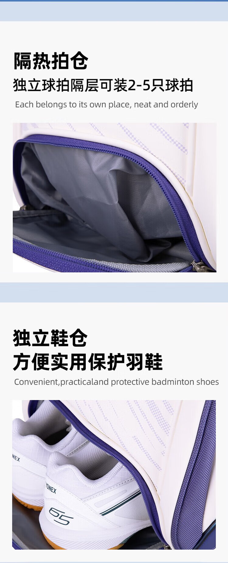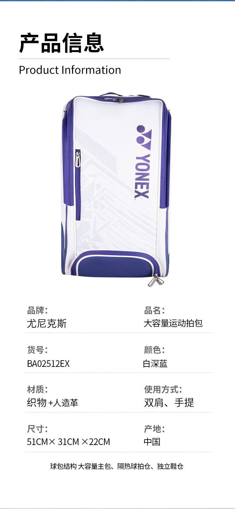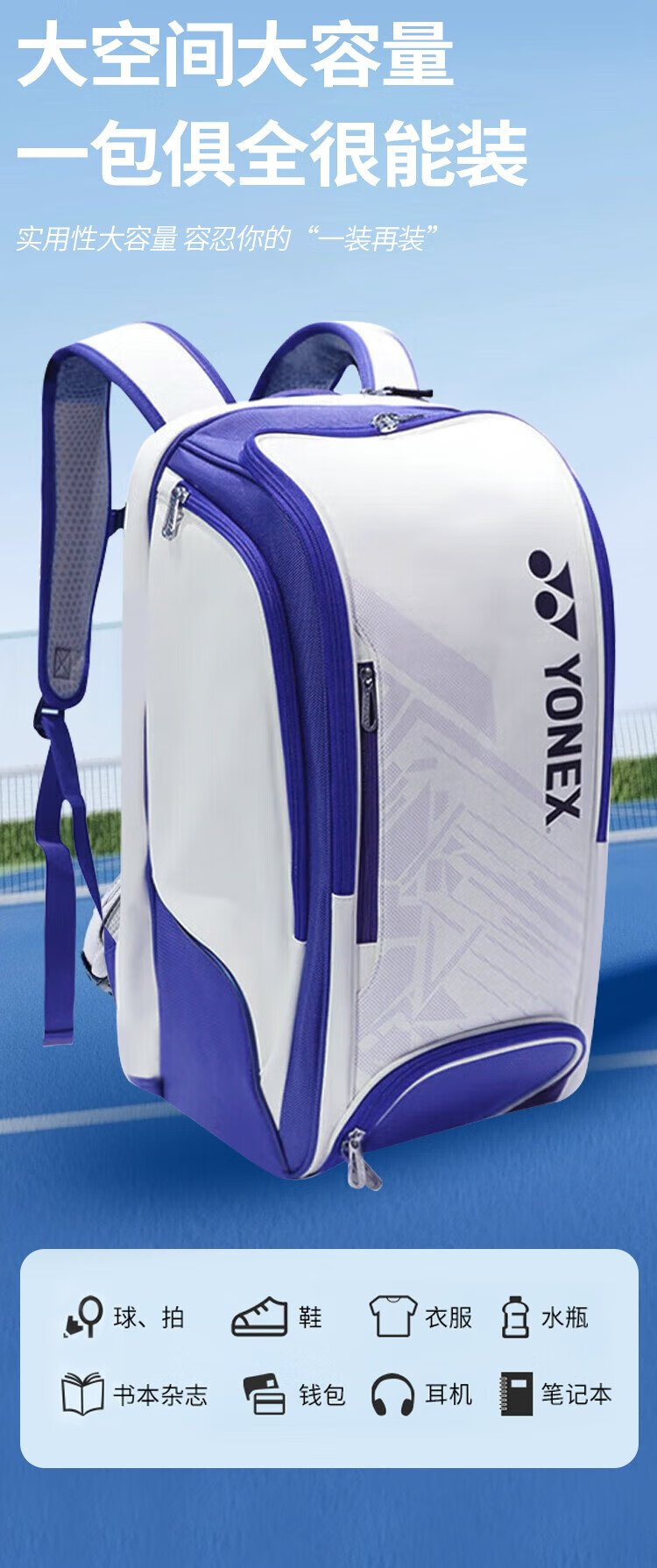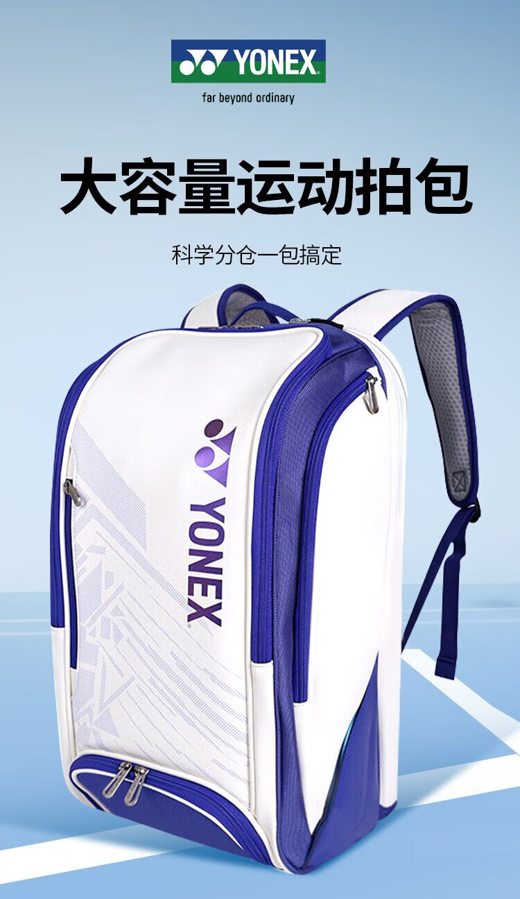 YONEX尤尼克斯羽毛球包多口袋独立鞋仓大容量双肩包BA02512EX白深蓝