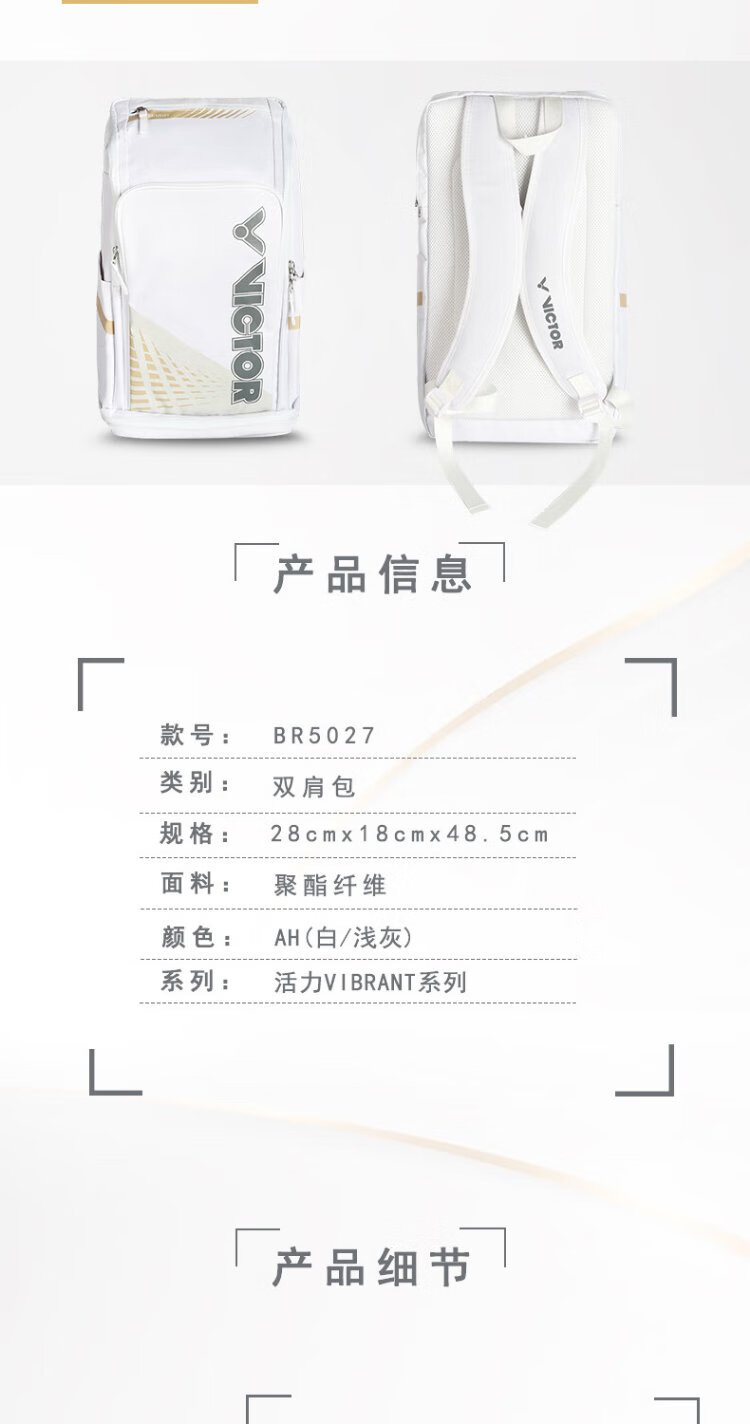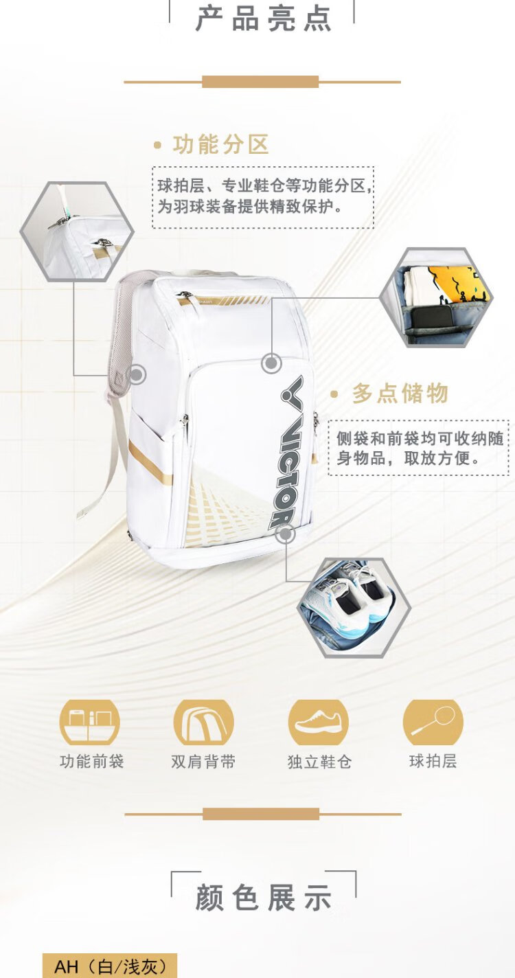 威克多(VICTOR)自营旗舰店羽毛球包男女款轻便时尚大容量独立鞋仓双肩包 BR5027
