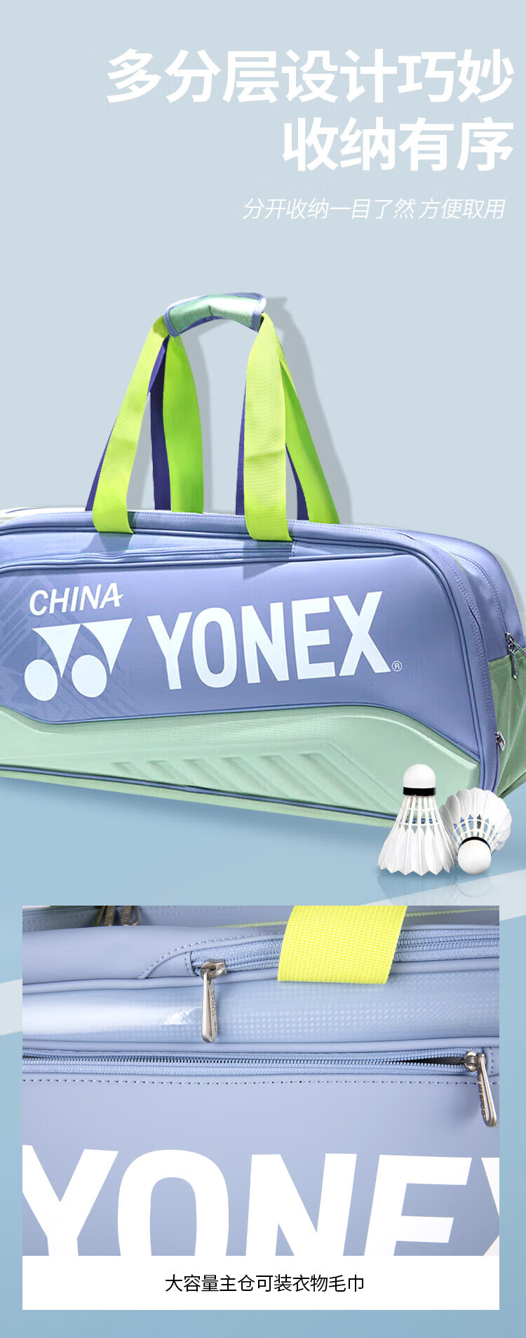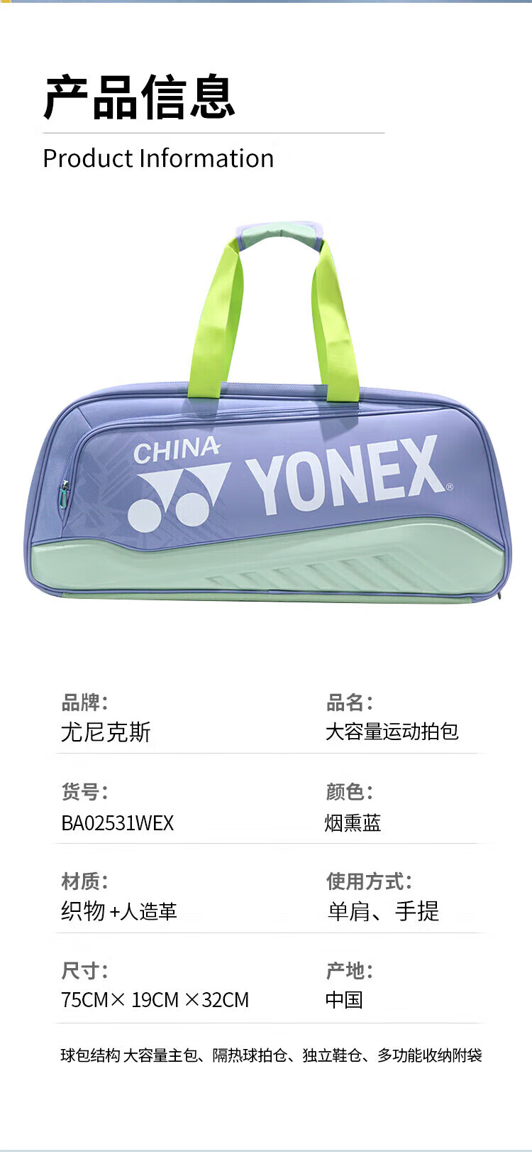 YONEX尤尼克斯羽毛球包手提包大容量背包独立鞋仓BA02531WEX烟熏蓝