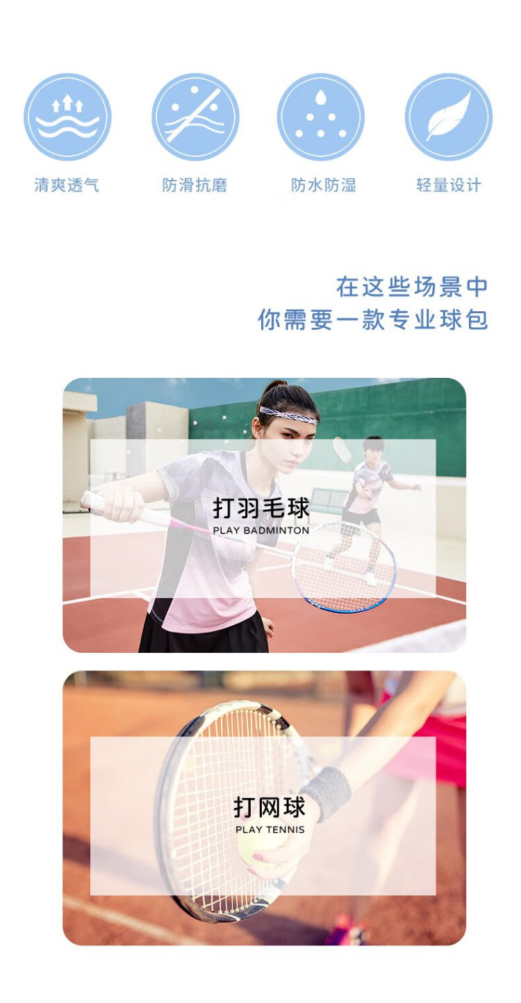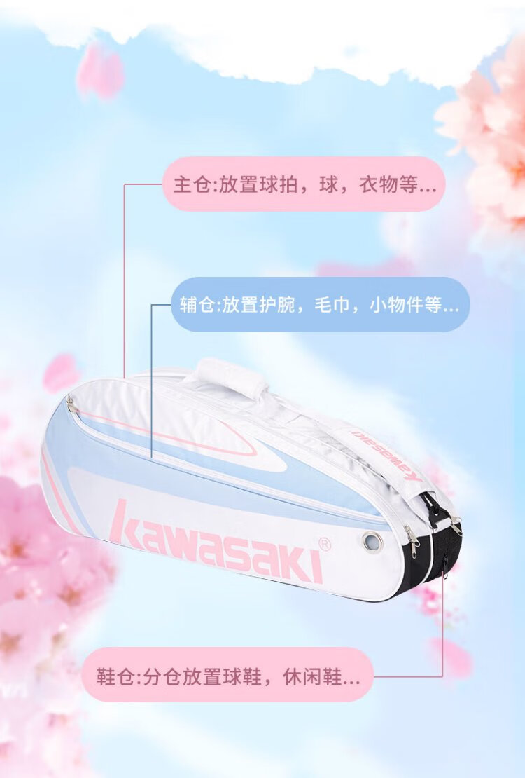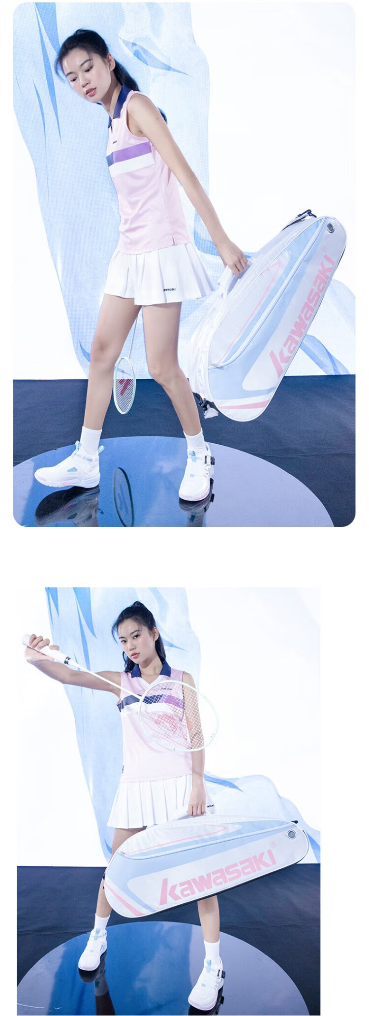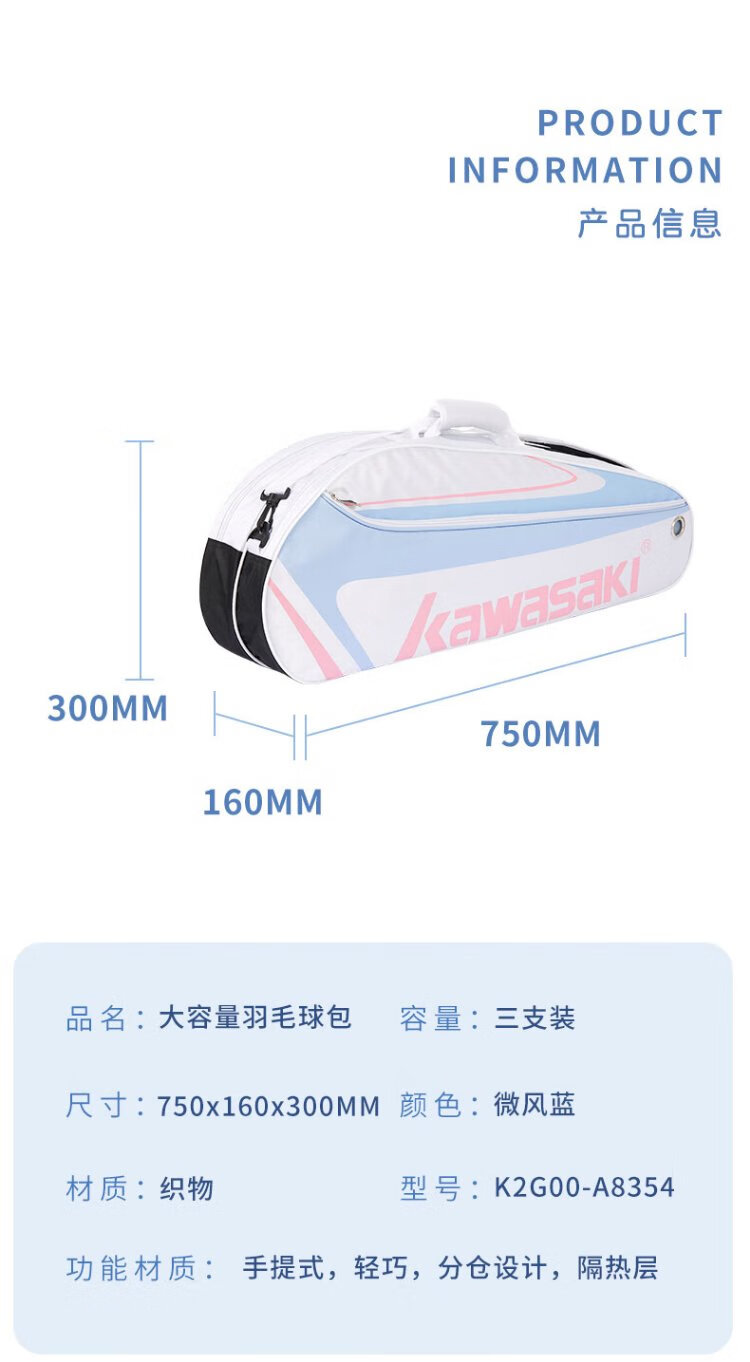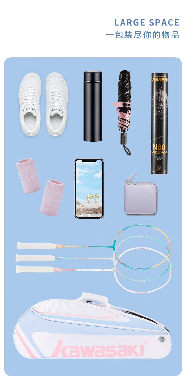 Kawasaki川崎羽毛球包大容量手提单肩包球拍包袋子3支装A8354微风蓝