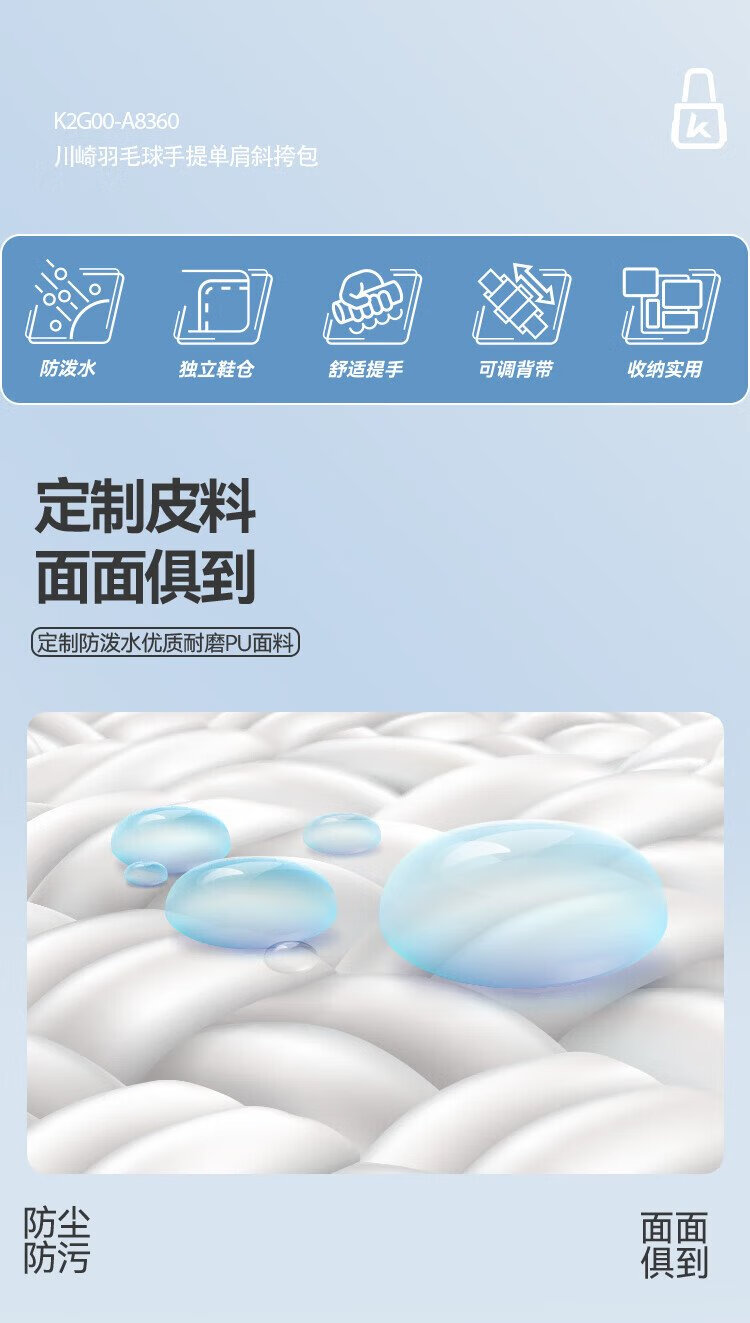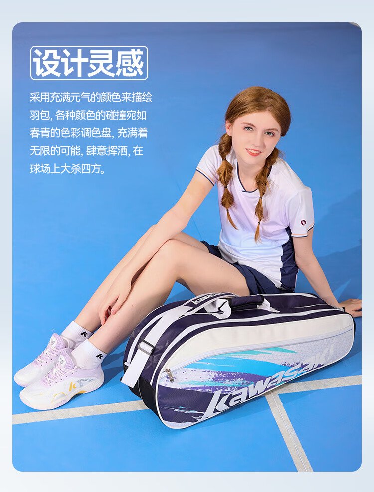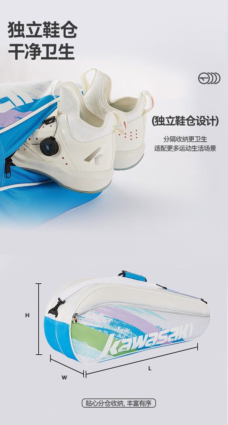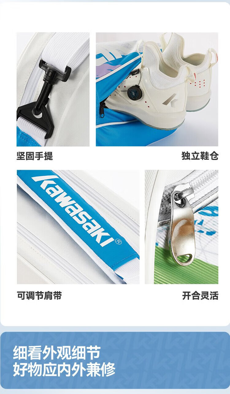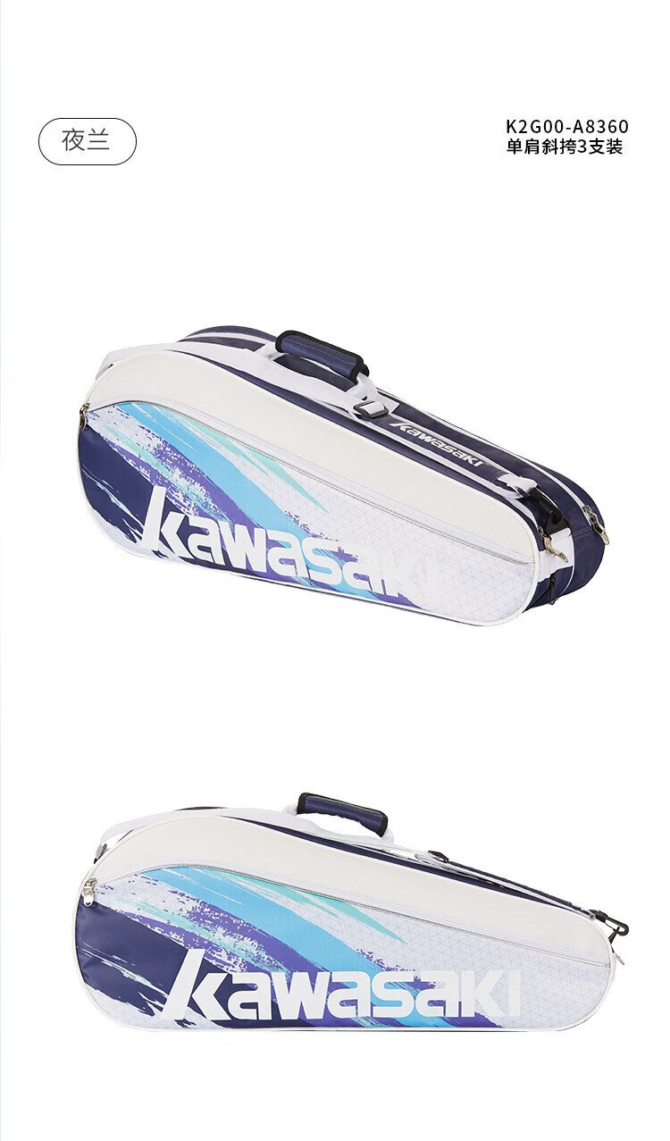Kawasaki川崎羽毛球包大容量手提单肩包球拍包袋子3支装A8360夜兰