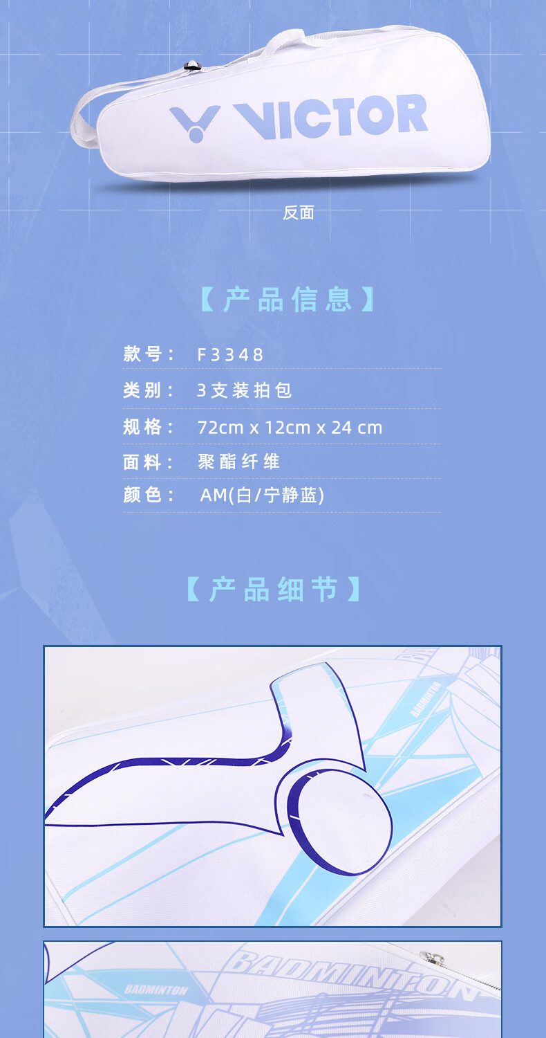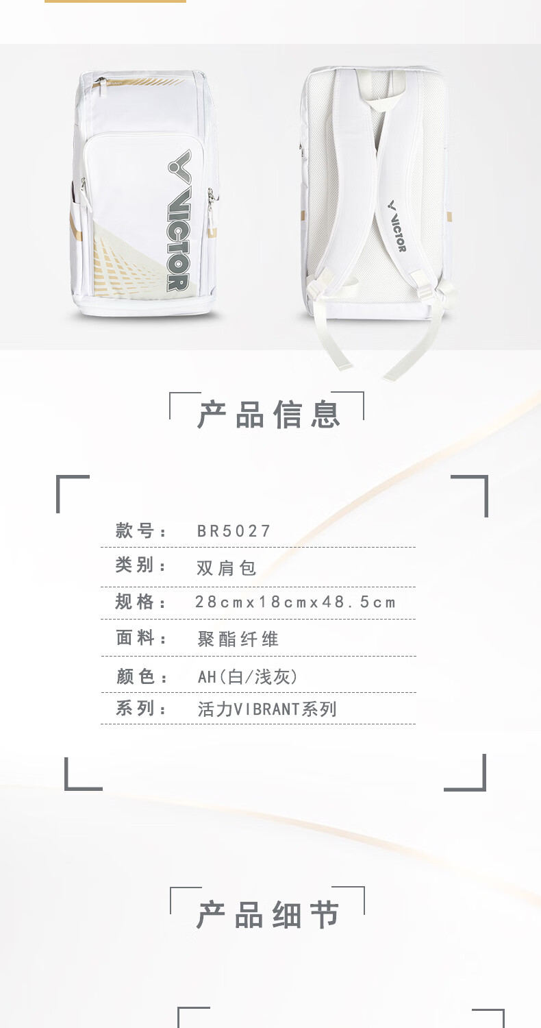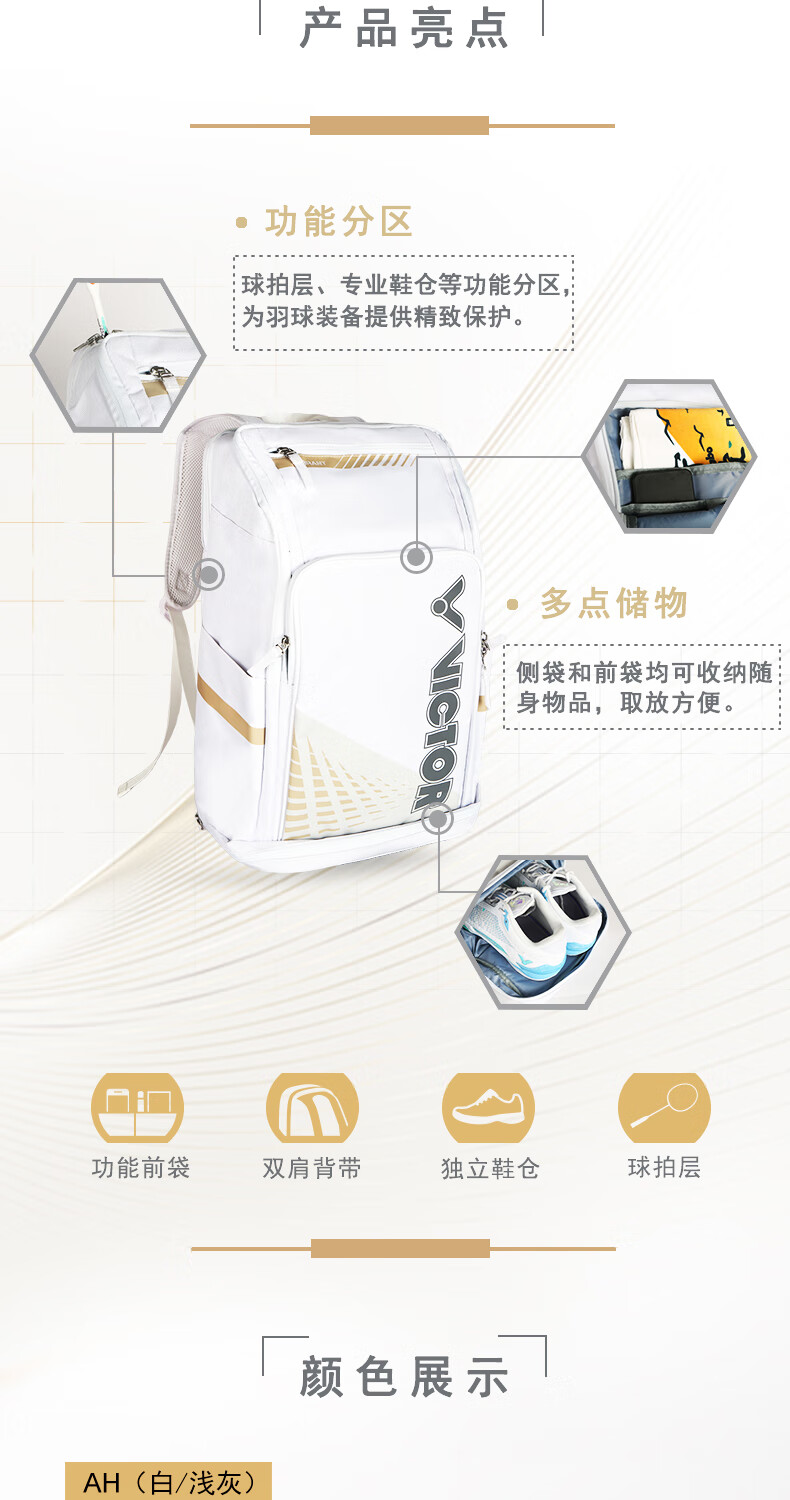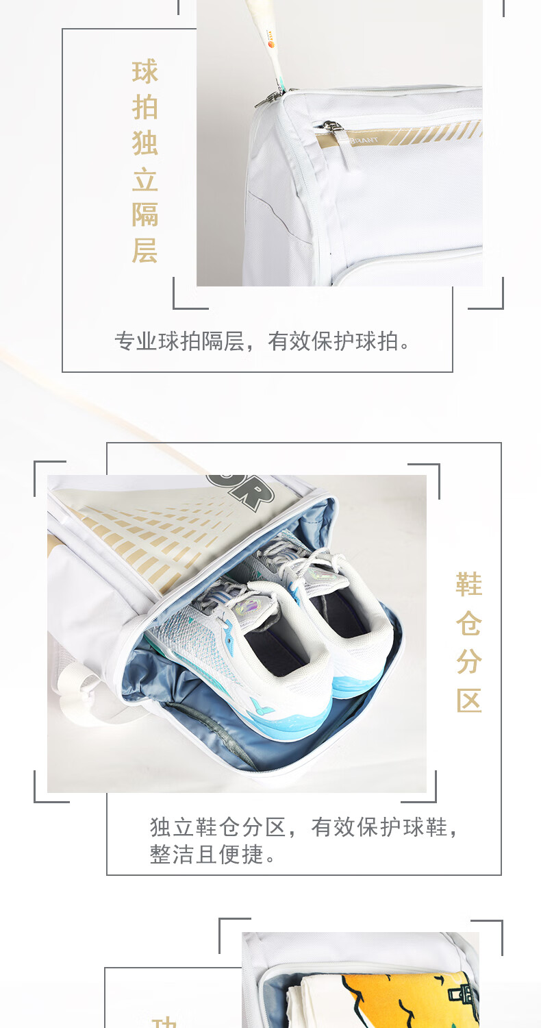 VICTOR Sac de badminton multifonctionnel de grande capacité, édition limitée, sac à dos de rangement indépendant pour chaussures, lot de 3 sacs de tir, sac à dos AH (blanc/gris clair)