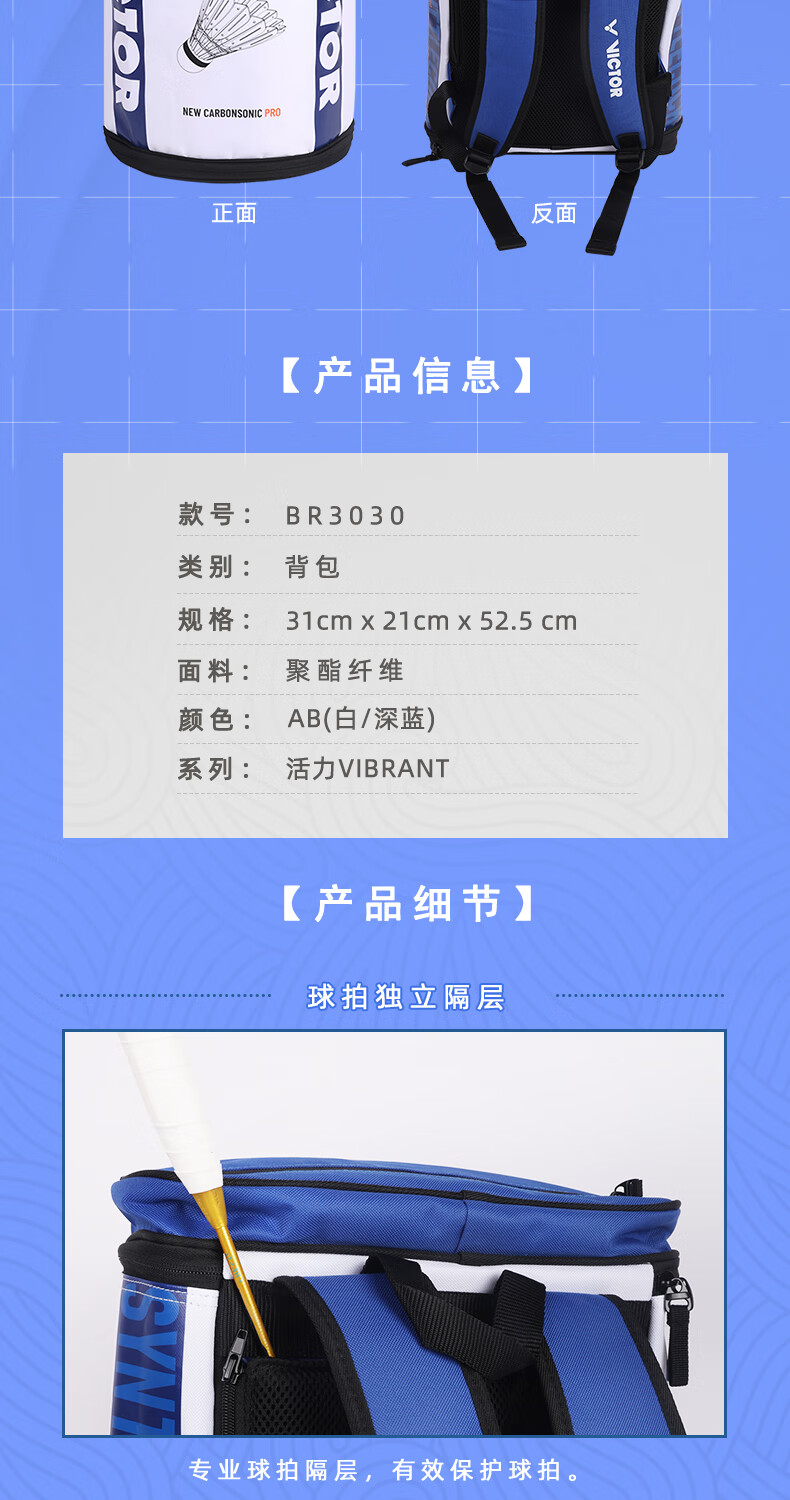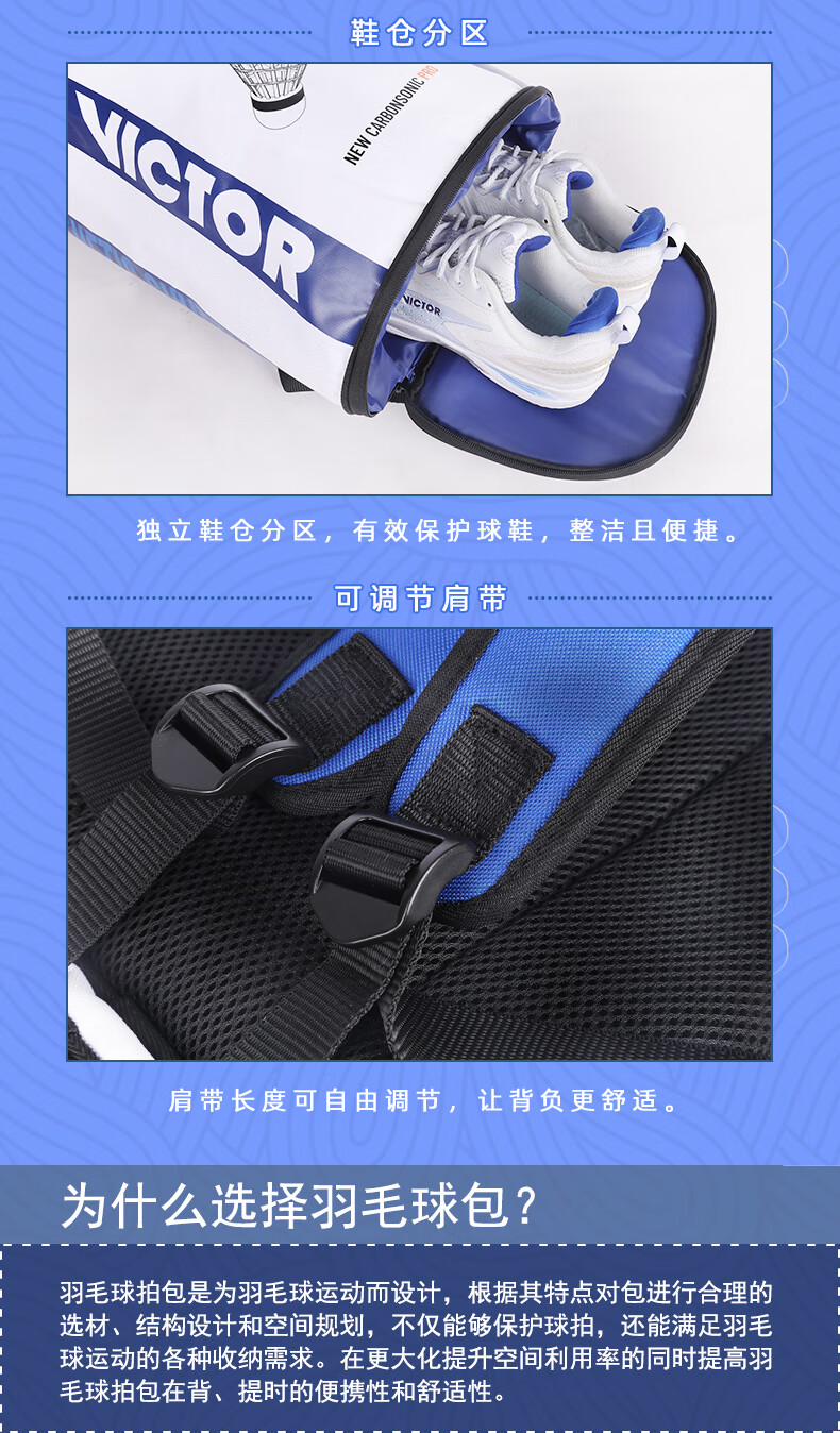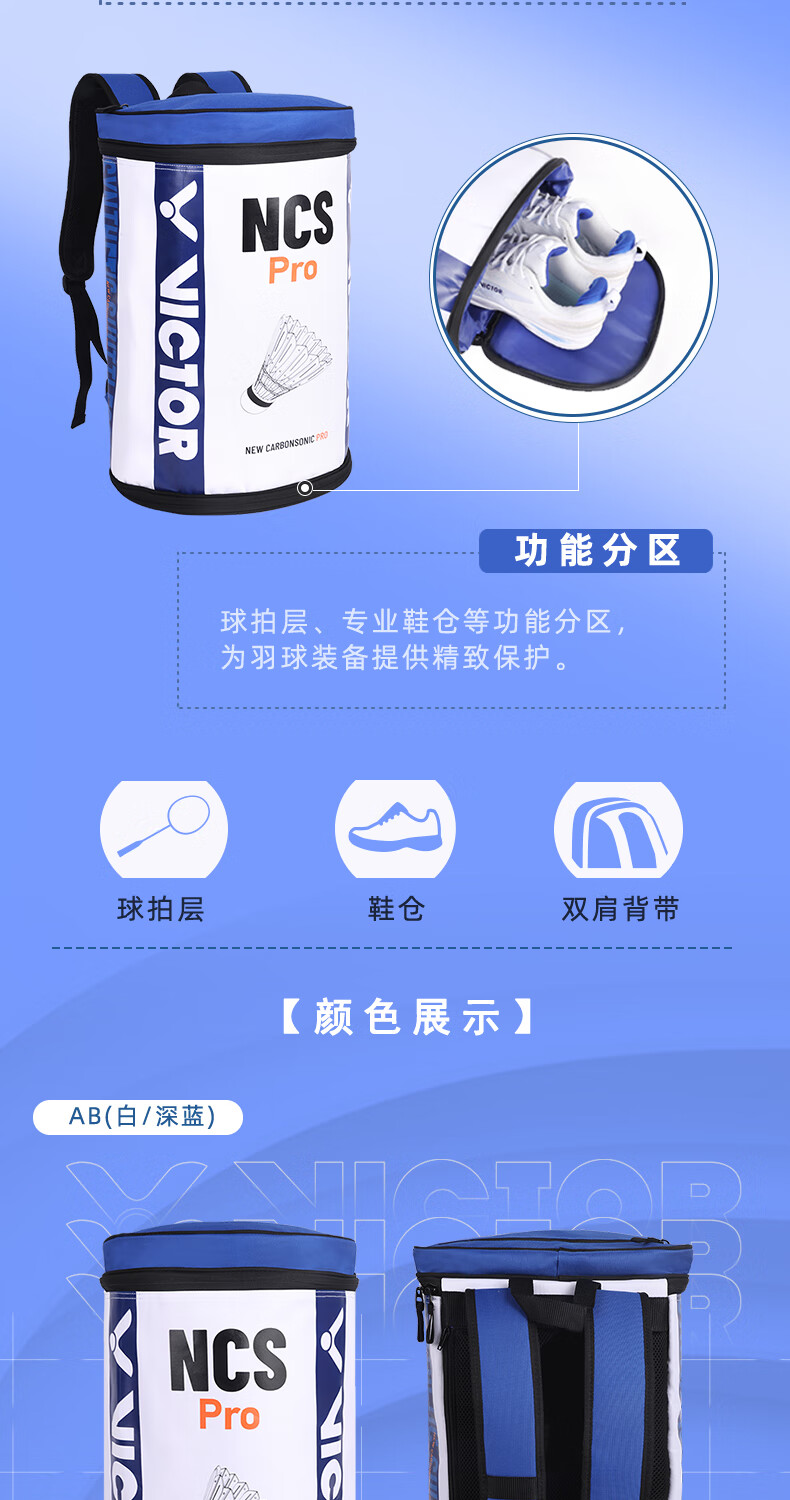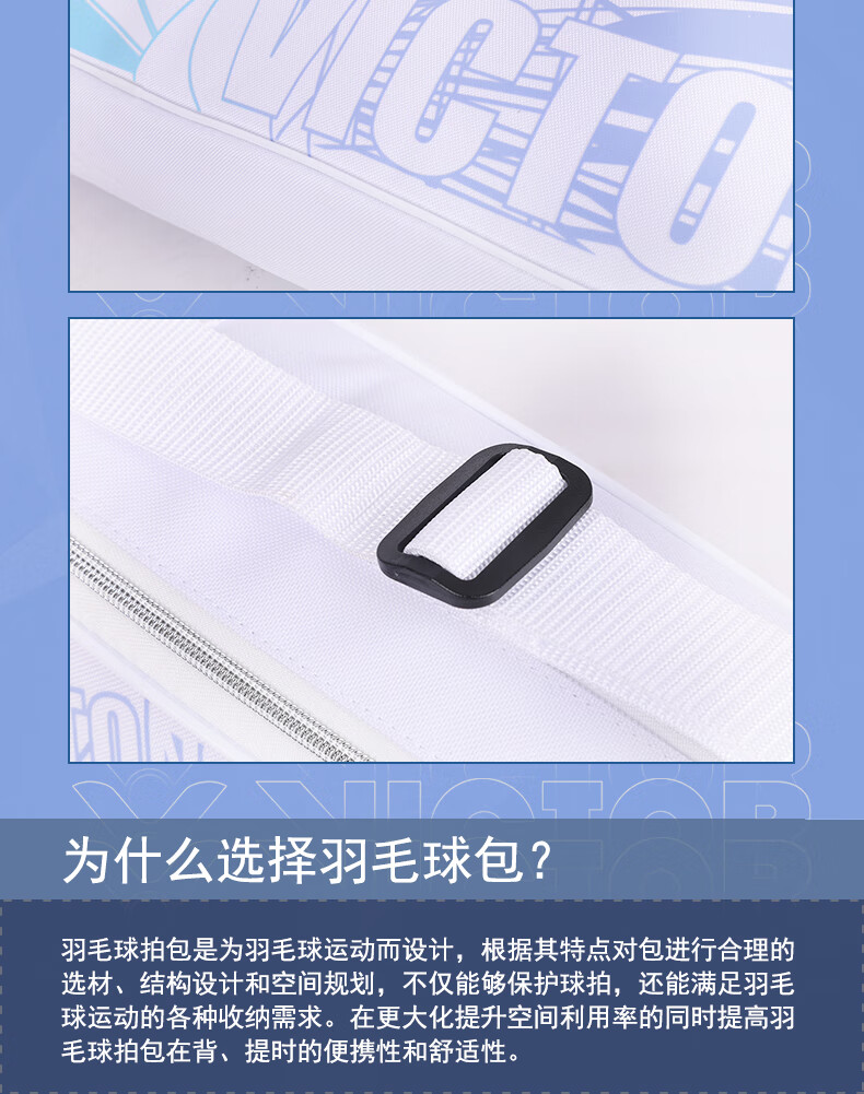 VICTOR Sac de badminton multifonctionnel de grande capacité, édition limitée, sac à dos de rangement indépendant pour chaussures, lot de 3 sacs de tir, sac à dos AH (blanc/gris clair)
