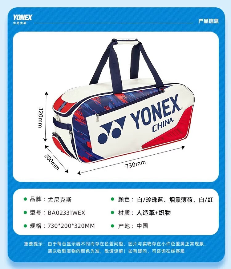 <Authentic Uni> Uni sac de badminton sac à dos sac d'école de tennis sac à dos d'entraînement sportif portable pour hommes et femmes BA02331WEX crème glacée