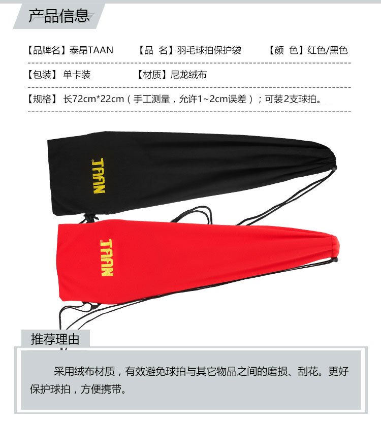 TAAN泰昂羽毛球拍套拍袋羽拍保护袋绒布收纳袋BAG911黑色1个
