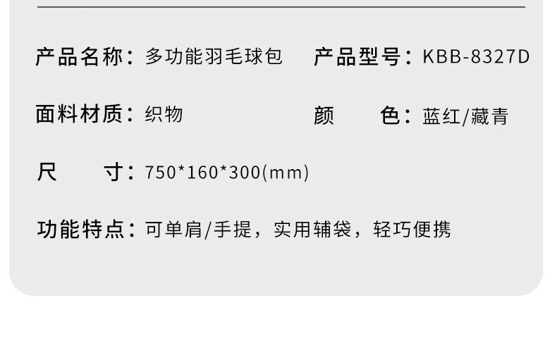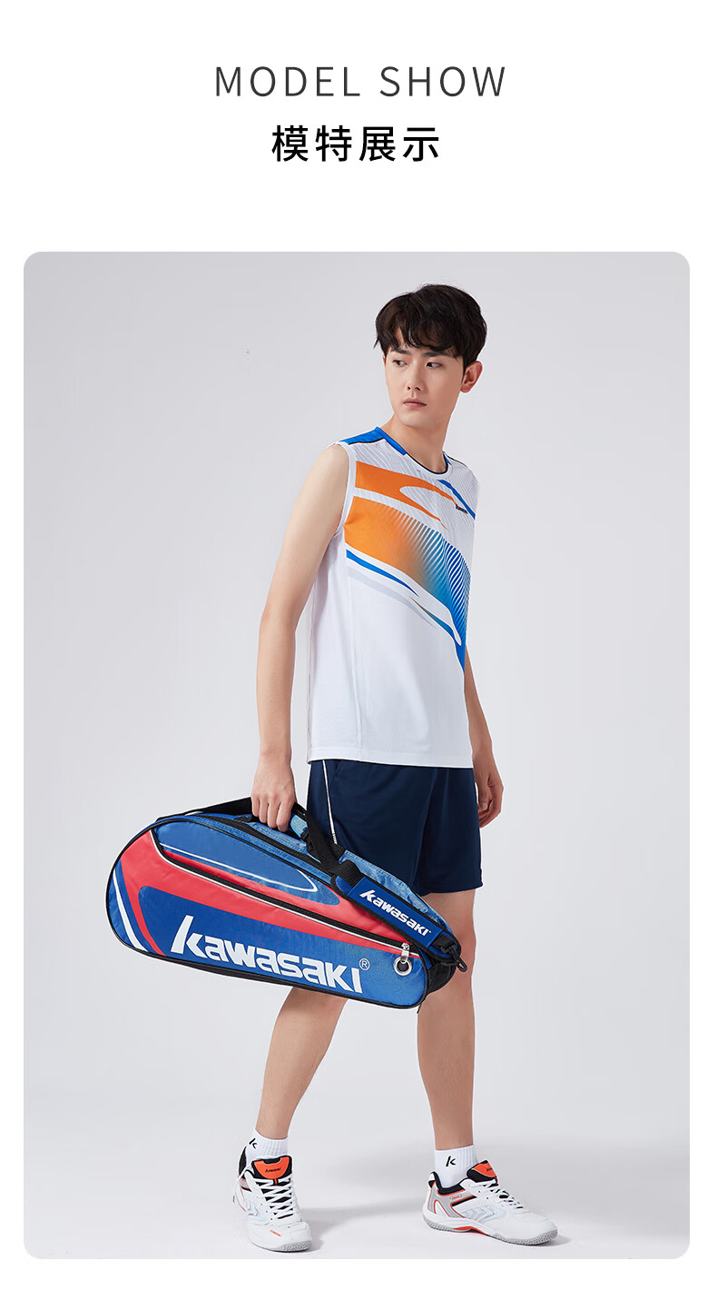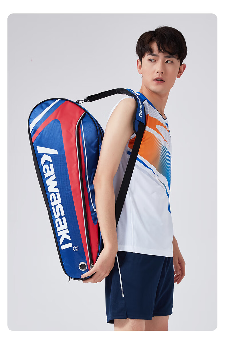 Kawasaki (KAWASAKI) badminton bag for men and women, professional sports, 3-pack storage bag, single shoulder portable, independent shoe compartment 8327D Navy (three-pack)