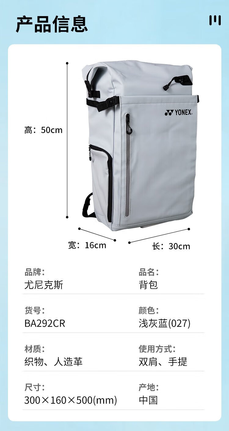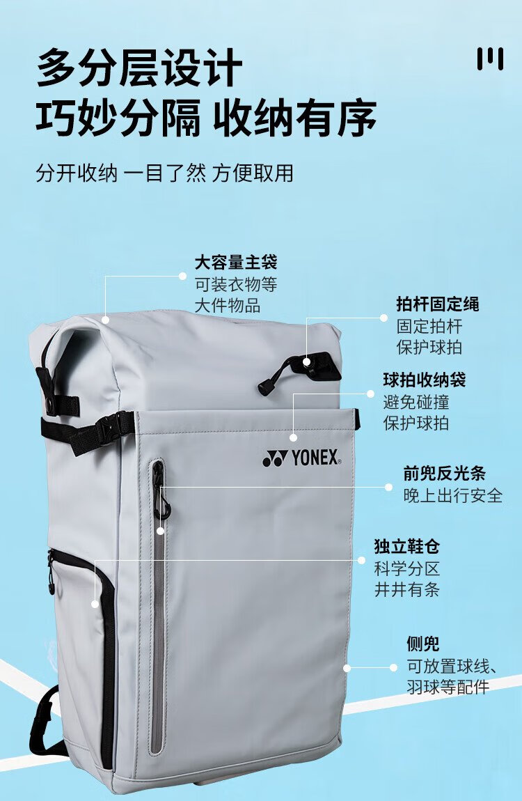 YONEX Yonex Badminton Bag Casual Sports Large Capacity Multifunctional Backpack BA292CR Light Gray Blue