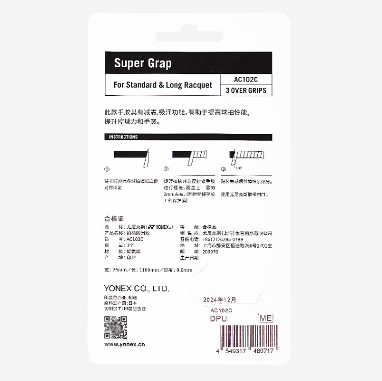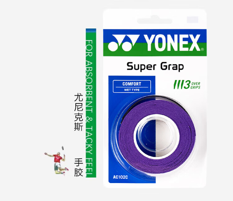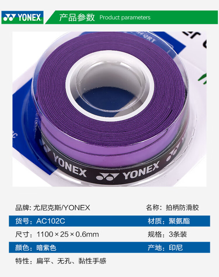 YONEX尤尼克斯羽毛球手胶运动吸汗带握把胶AC-102C-240暗紫色三条装