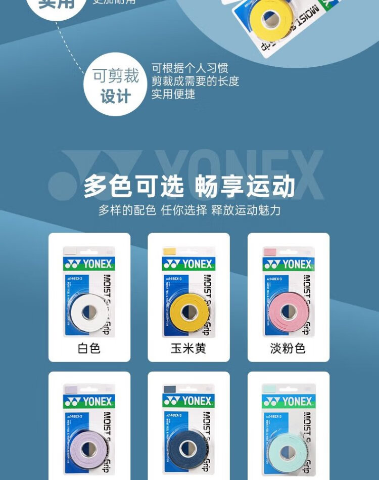 YONEX尤尼克斯羽毛球拍手胶吸汗带湿润绑带AC148EX-3黄色3条装