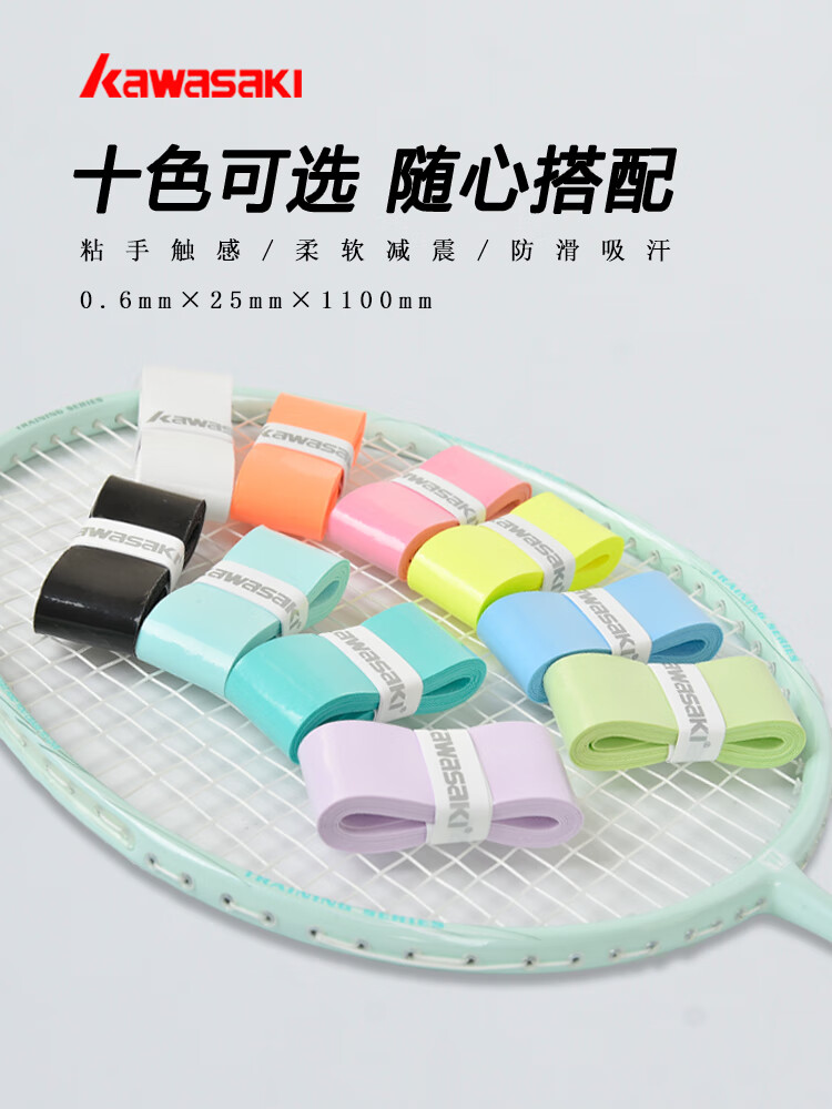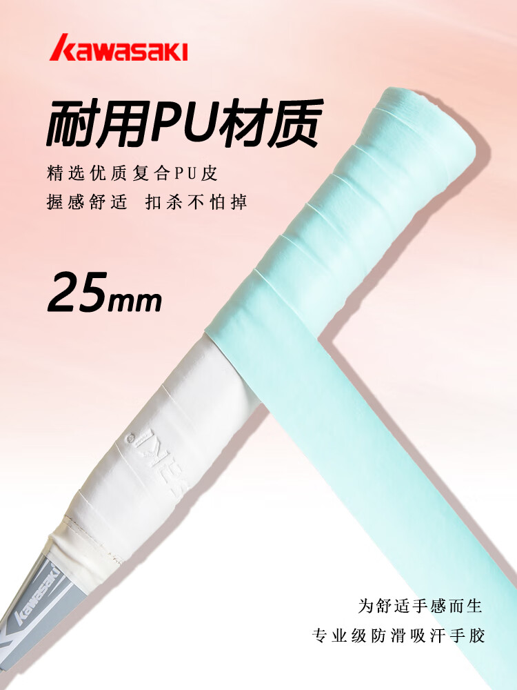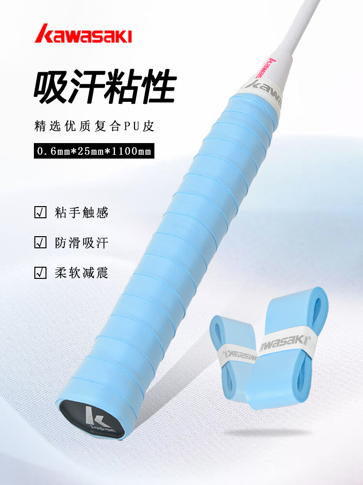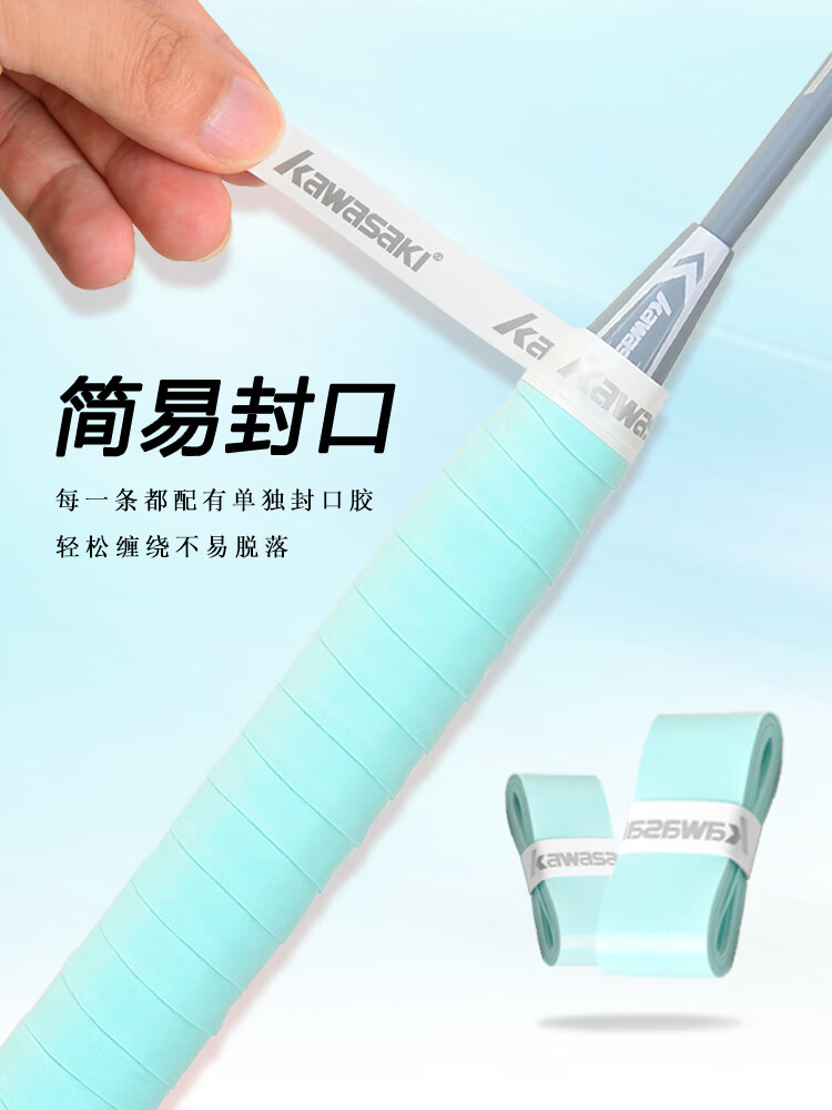 KAWASAKI Kawasaki Colle à main de badminton Beauty Bande absorbant la transpiration Antidérapante Absorption des chocs confortable Raquette de badminton respirante Colle à main super douce 001 Cyan 1 paquet
