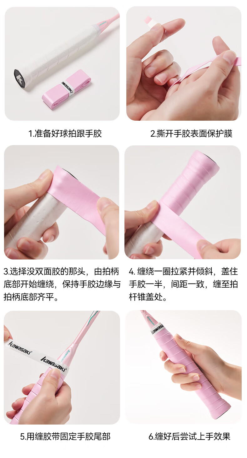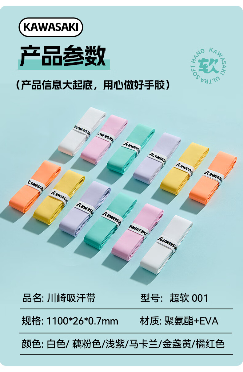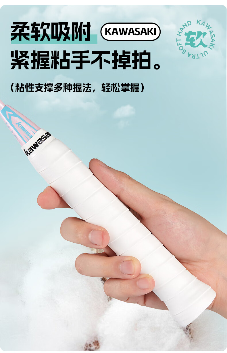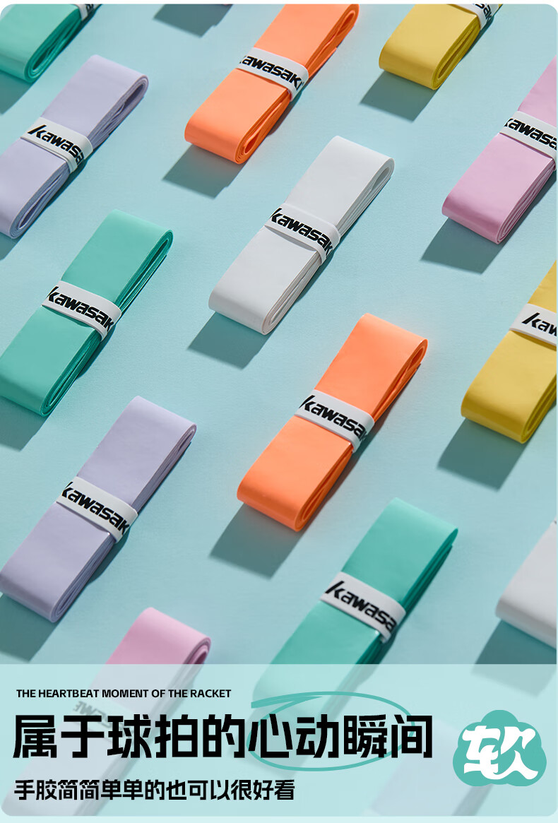 川崎(KAWASAKI)【5-10条】羽毛球拍手胶柔软防滑光面球拍柄缠把带吸汗带防滑 【3条装】颜色随机