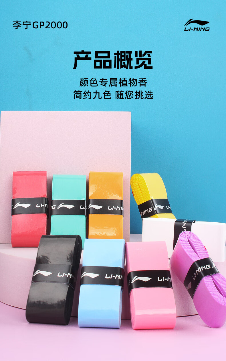 Li Ning Raquette de Badminton Colle à Main GP2000 Poignée Wrap Raquette de Tennis Wrap Tape Tie Anti-dérapant Bande Absorbante de Sueur Bois de Santal Noir 1 Paquet