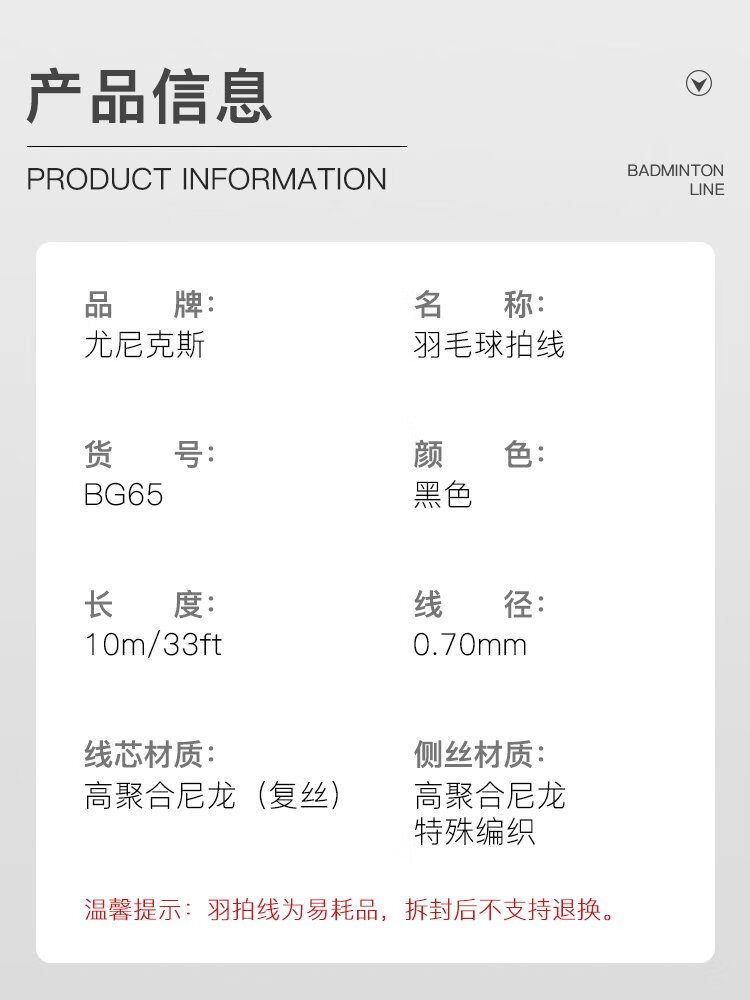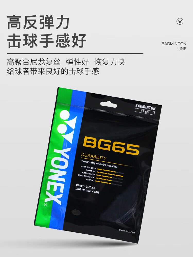 YONEX尤尼克斯羽毛球线yy耐打型专业羽毛球线BG65黑色单扎装