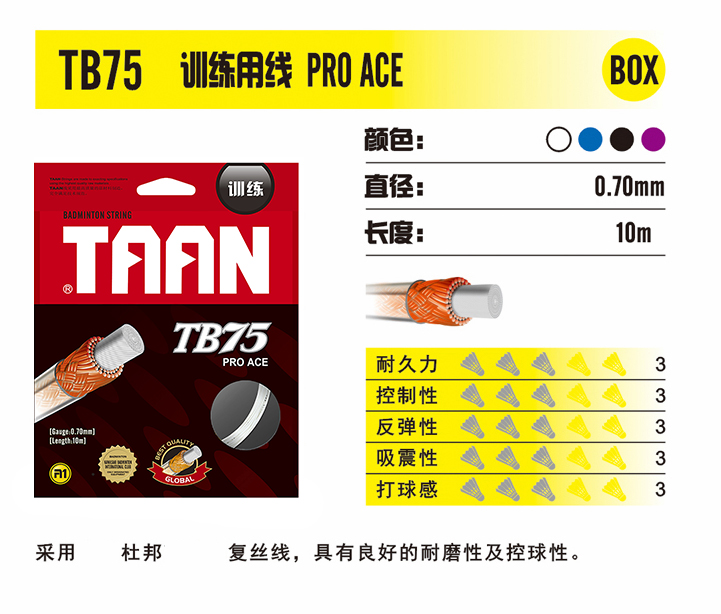 Taiang (TAAN) Corde de badminton Taiang corde de badminton corde de raquette de badminton élastique ensachée TB75s résistante à 75 cordes vert