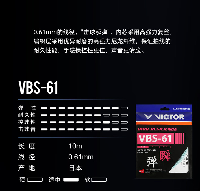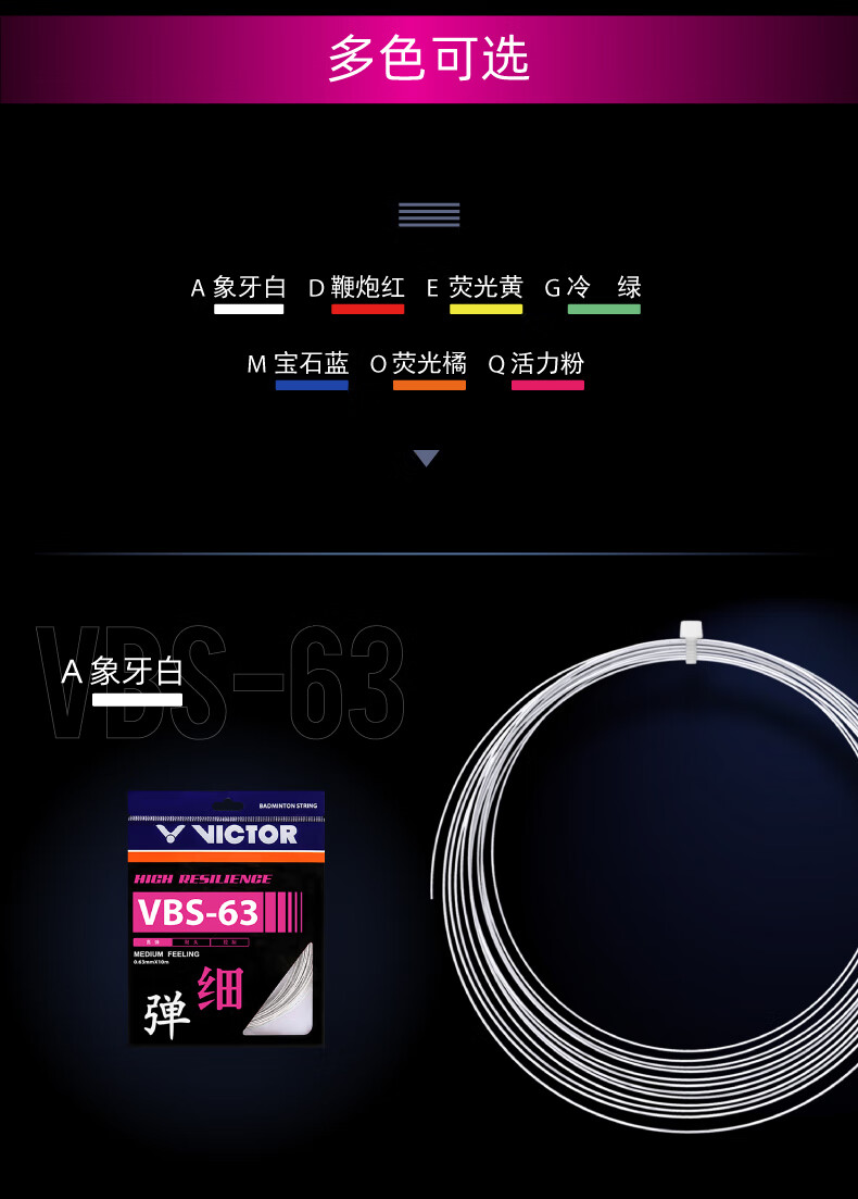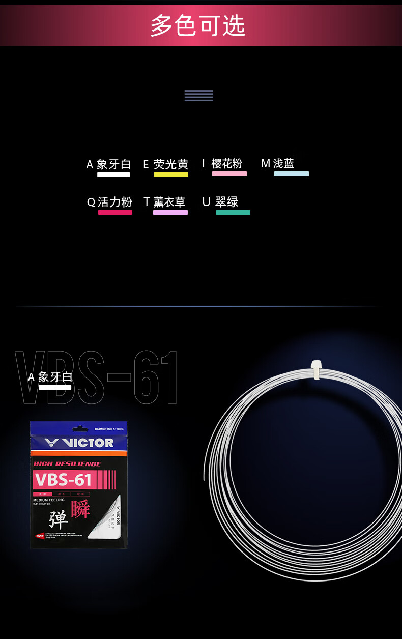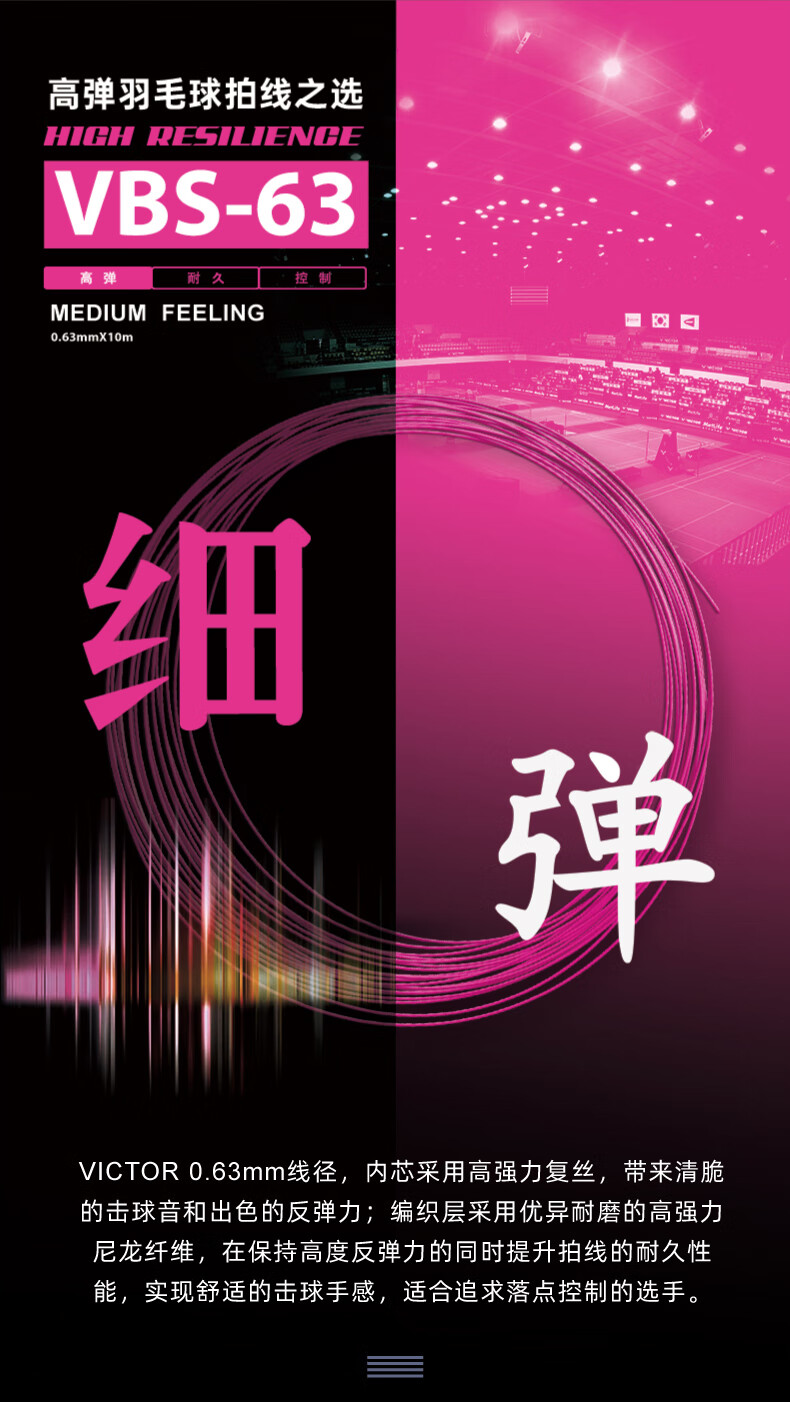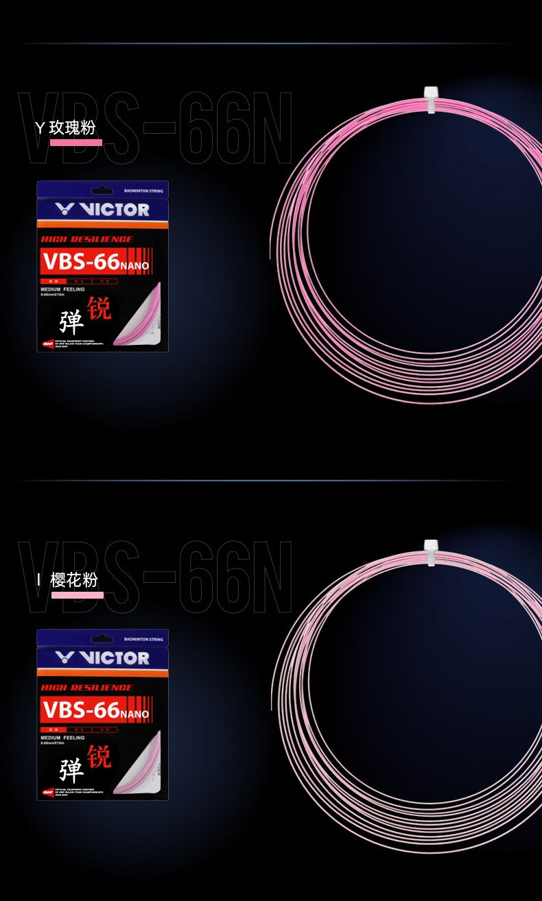 威克多(VICTOR)胜利羽毛球拍线Vbs66n羽毛球线耐打高弹vbs63比赛训练线网线VBS61 VBS66N-I樱花粉 0.66mm×10m