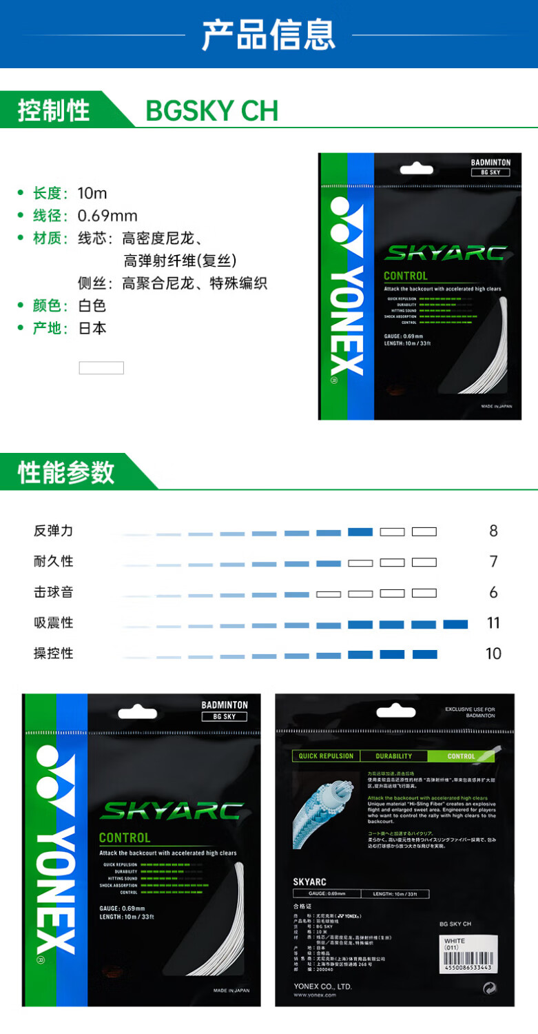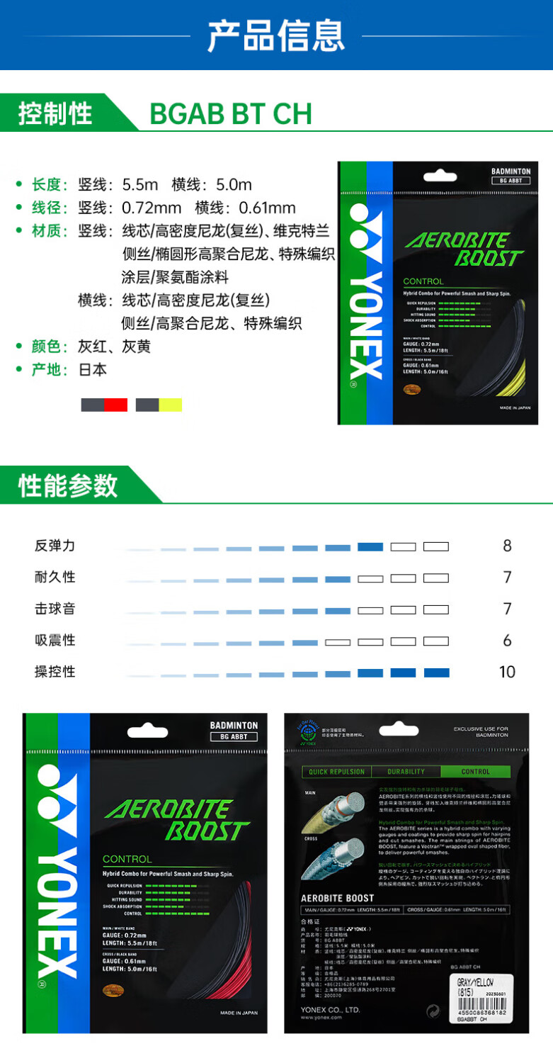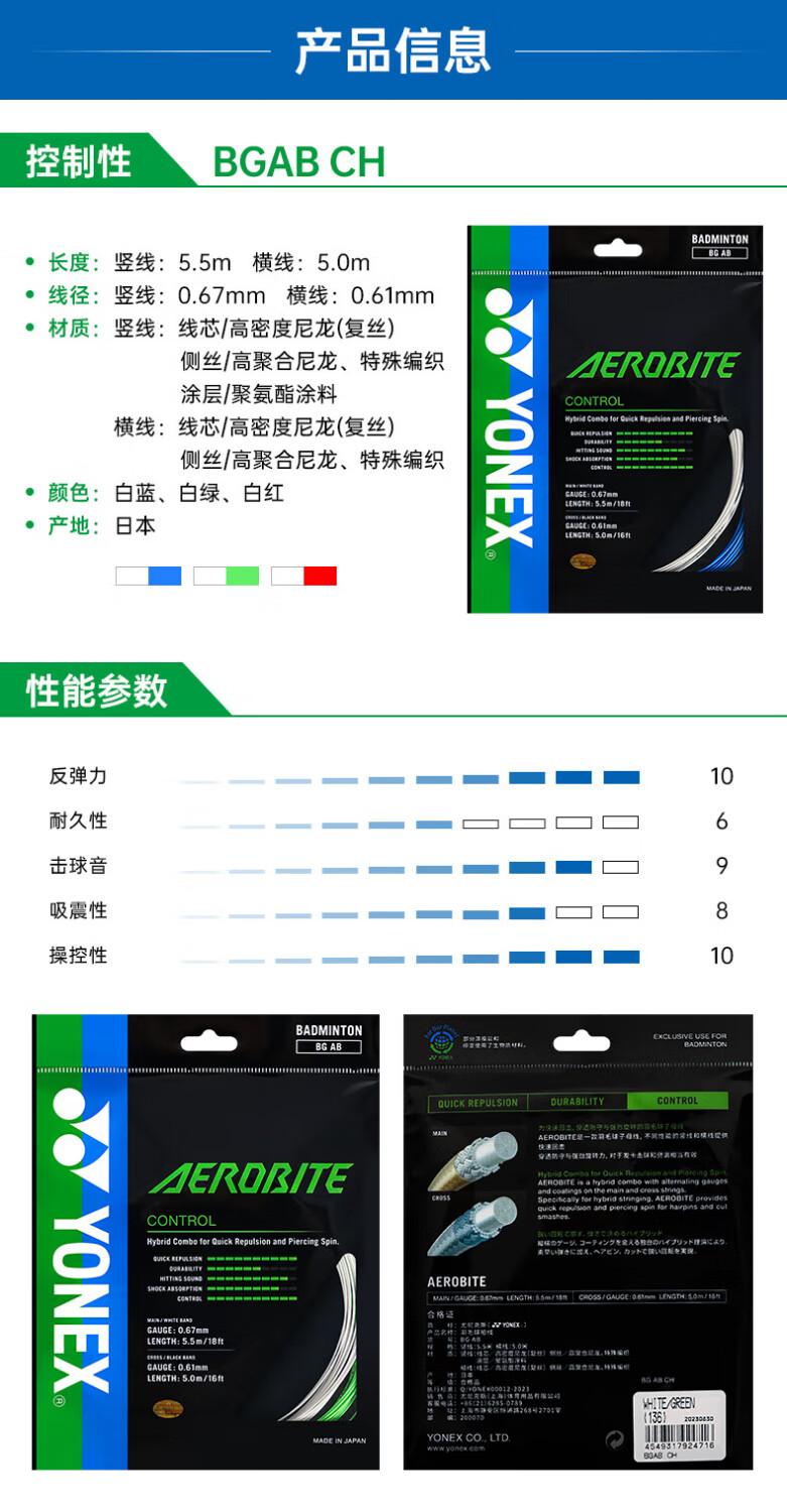 Yonex (YONEX) imported professional badminton line ab line badminton racket line special line high elasticity resistant line network cable bgab sub-bus bgab sub-bus strong smash white green