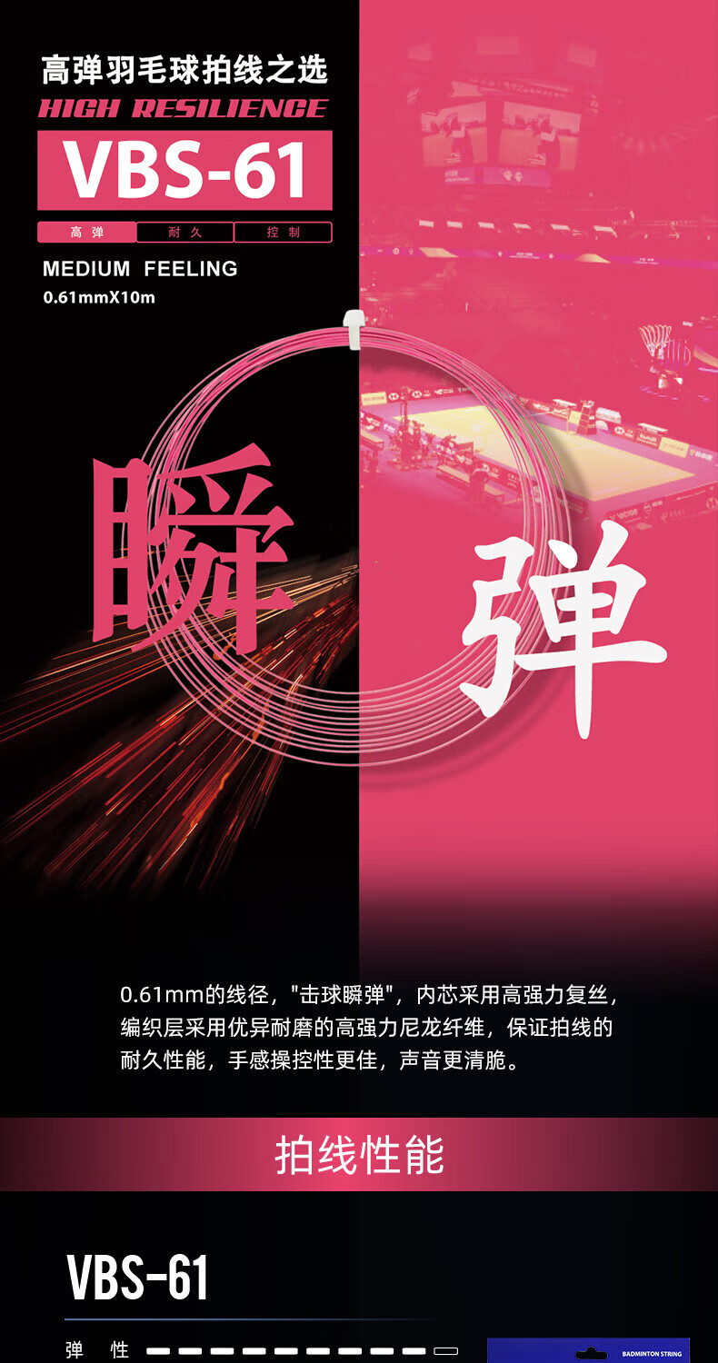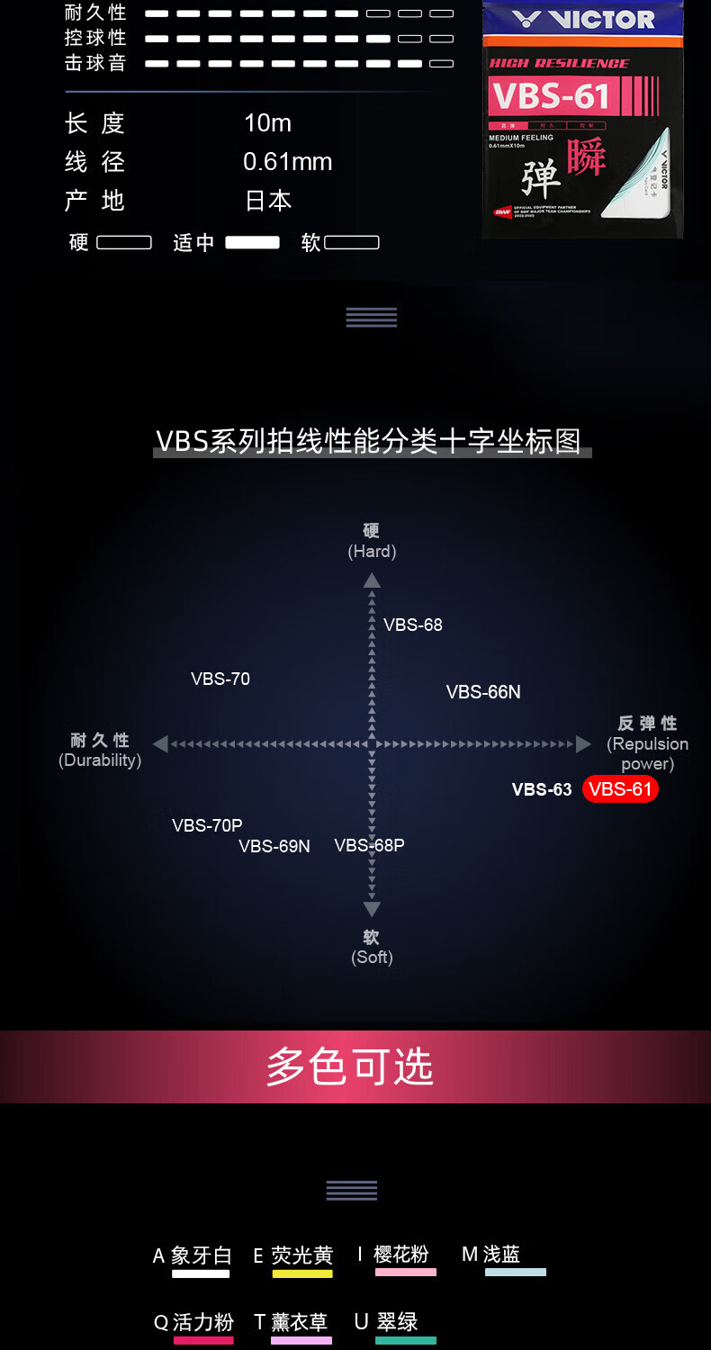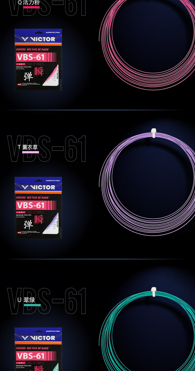Cordage de badminton VICTOR Victory à haute élasticité, durabilité et contrôlabilité, cordage de raquette élastique ultra-fin VBS-61 résistant VBS-61 U vert émeraude