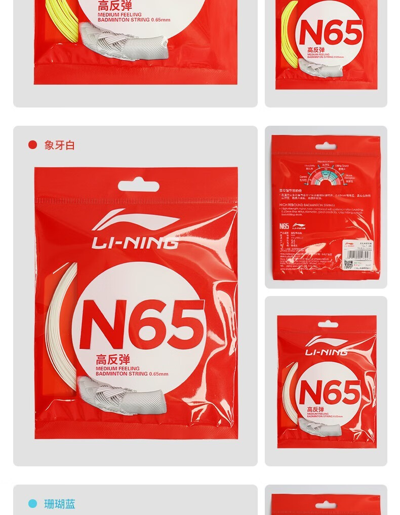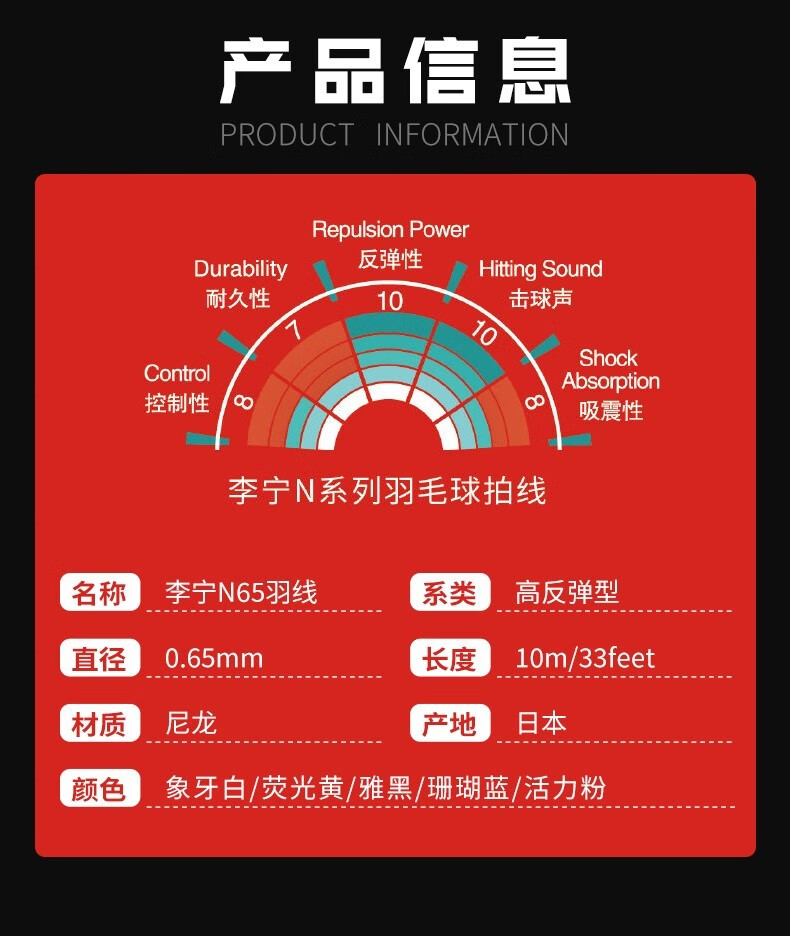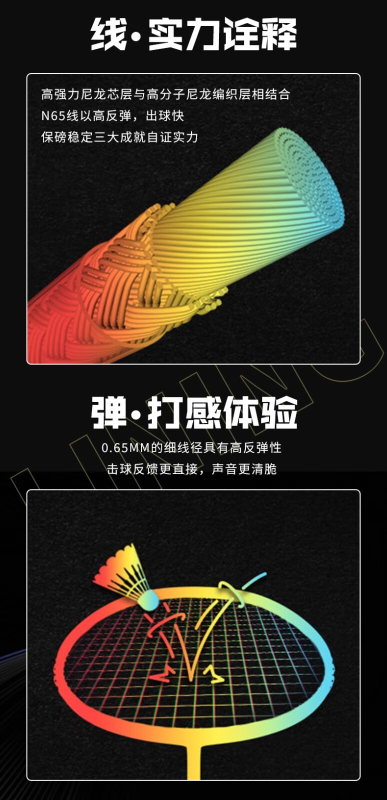 李宁(LI-NING)羽毛球线高弹耐打均衡型专业网线5号线7号高反弹1号线N65 荧光耀粉
